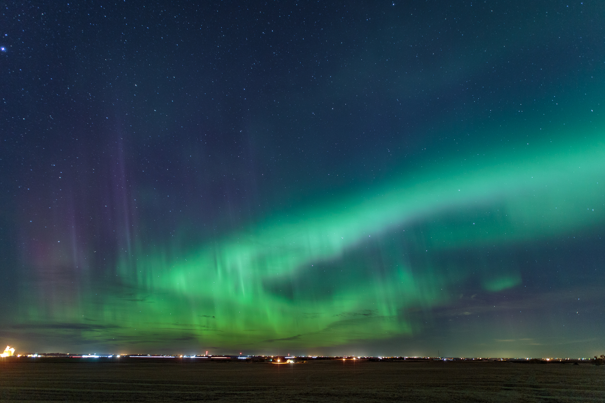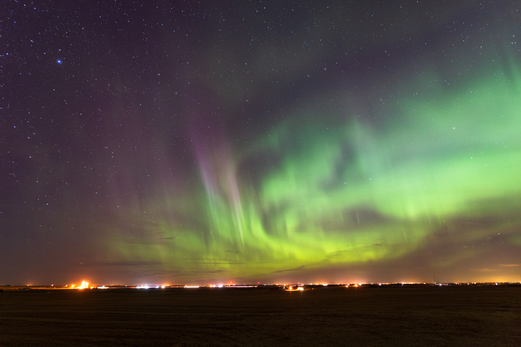 An unexpected arrival gift from Canada – Some auroras. I arrived into Calgary (YYC) late on the 27th and headed to the hotel. We saw that the Northern Lights were active, so we headed out of Calgary up to Crossfield to get a better look.