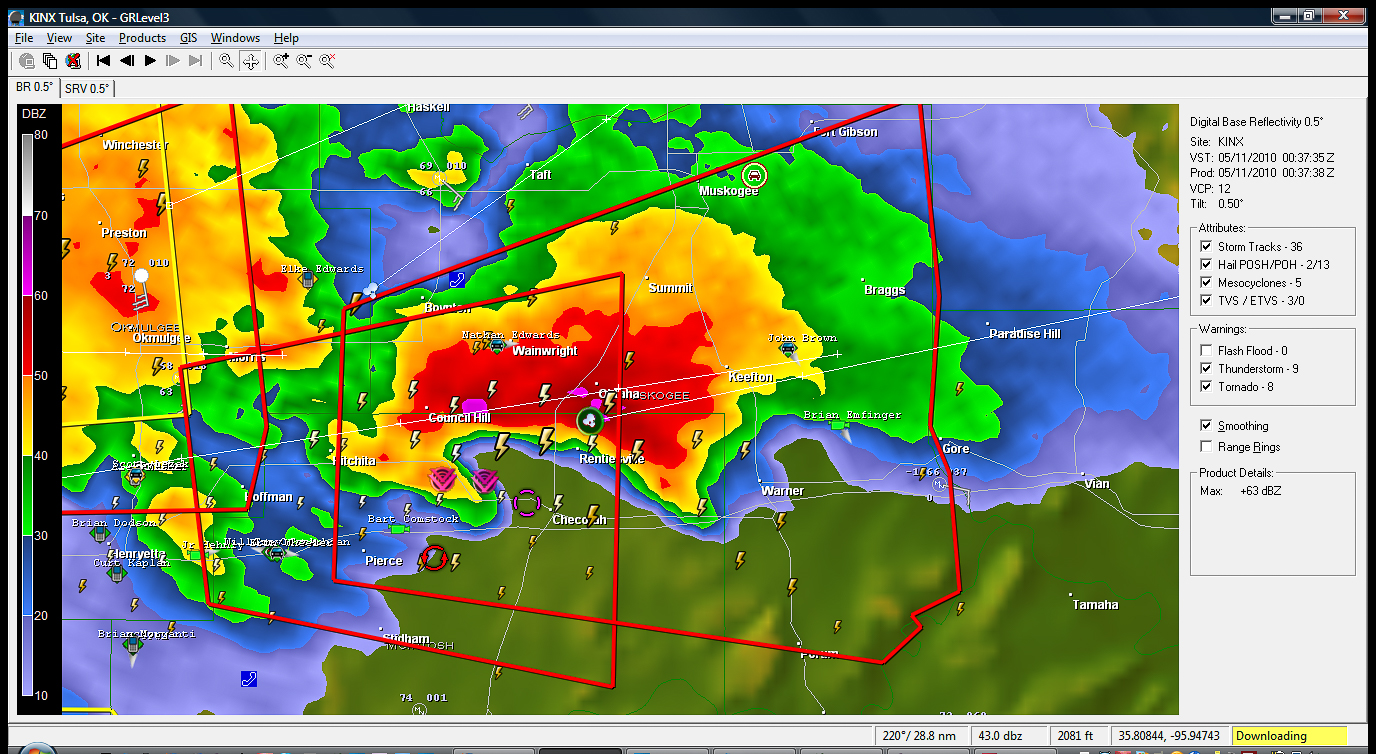 South and then back east on the turnpike to Tulsa. We editing some video and got it online at this point of the Medford storm.