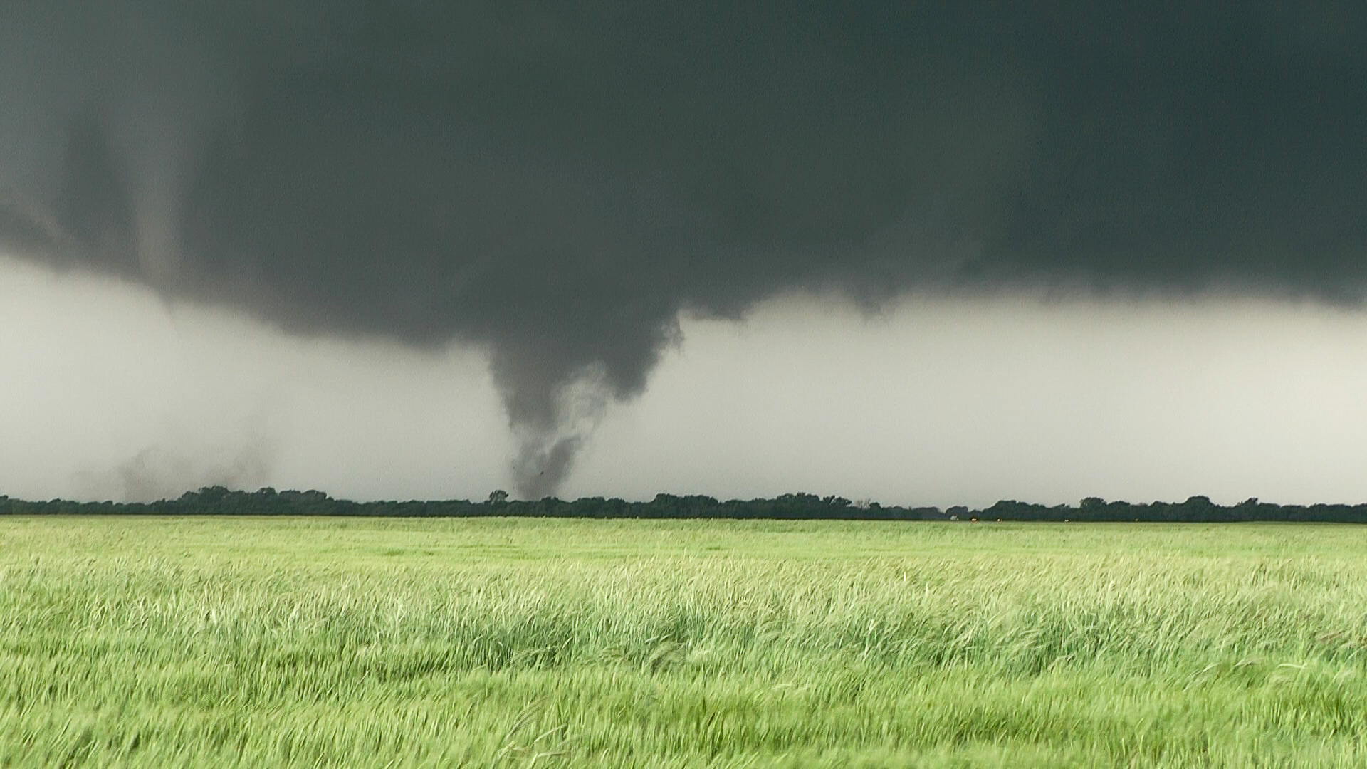 The tornado turned multivortex right away, and then dropped a satellite tornado in the field right in front of us. With storm motions of 60+ MPH, we didn’t have a long time period to sit and enjoy the tornado. I was convinced it was going to turn into a huge wedge, and that we needed to get further south so we didn’t end up being accidental tornado debris.