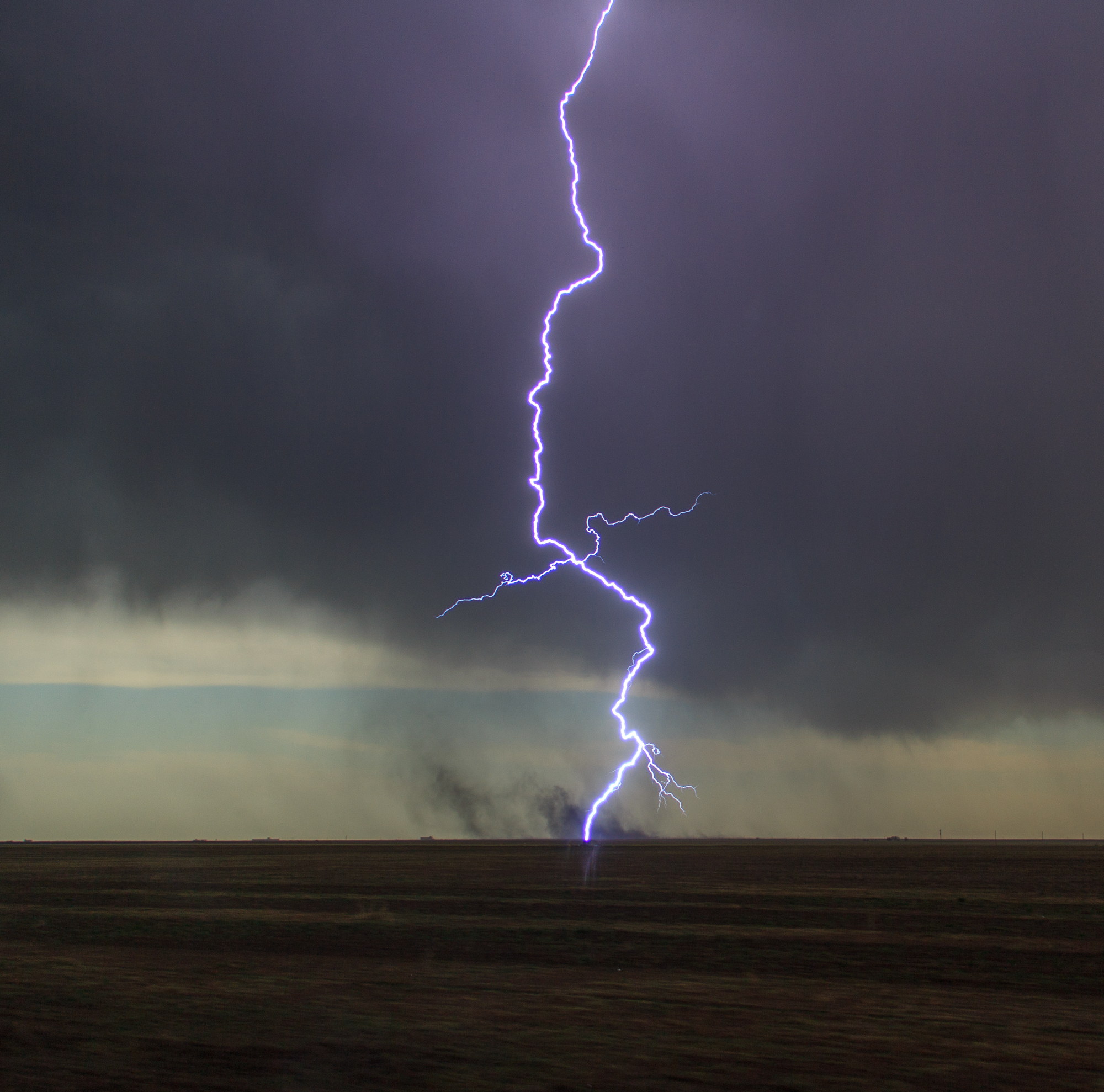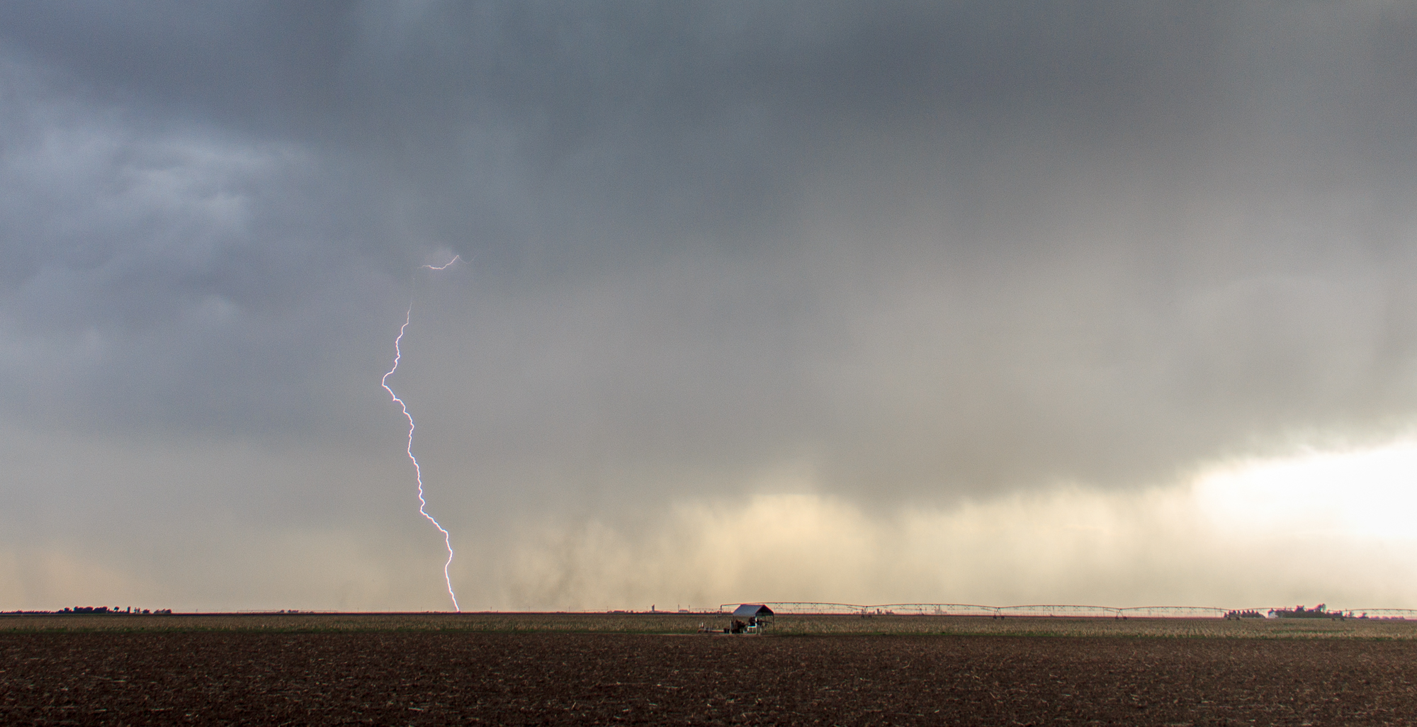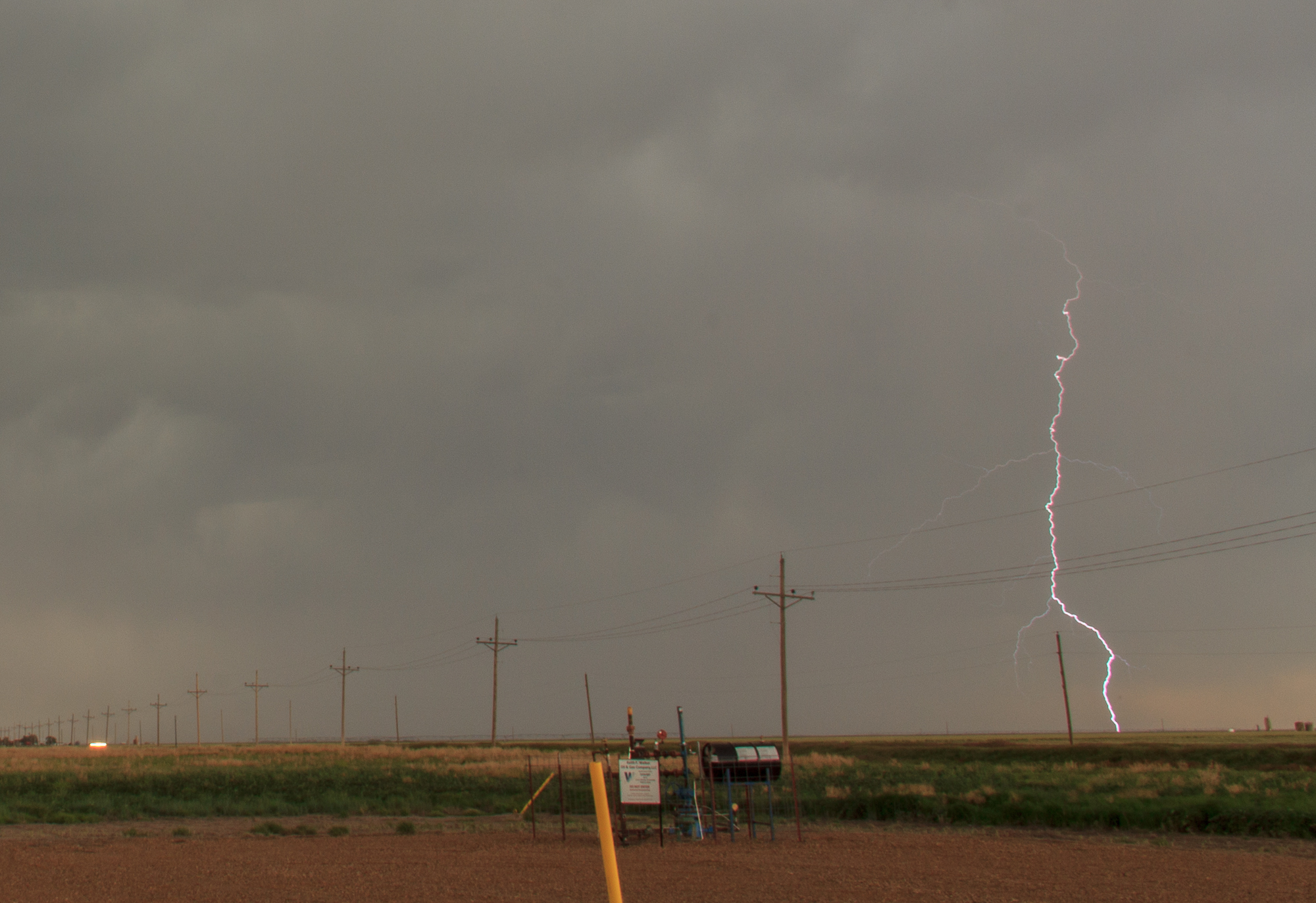 We topped all the tanks off in Guymon then headed into SW Kansas near Hugoton and Ulysses where we came upon a line of elevated storms. For me, they weren’t very impressive but for our guests they were pretty cool with many gustnadoes and just outflow winds blowing dust into the air. The cloud to ground lightning bolts were pretty spectacular, as it became a chase for lightning photos for me.