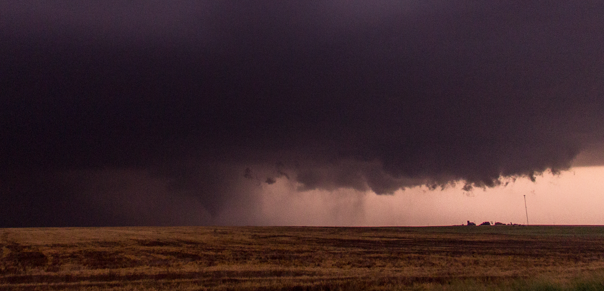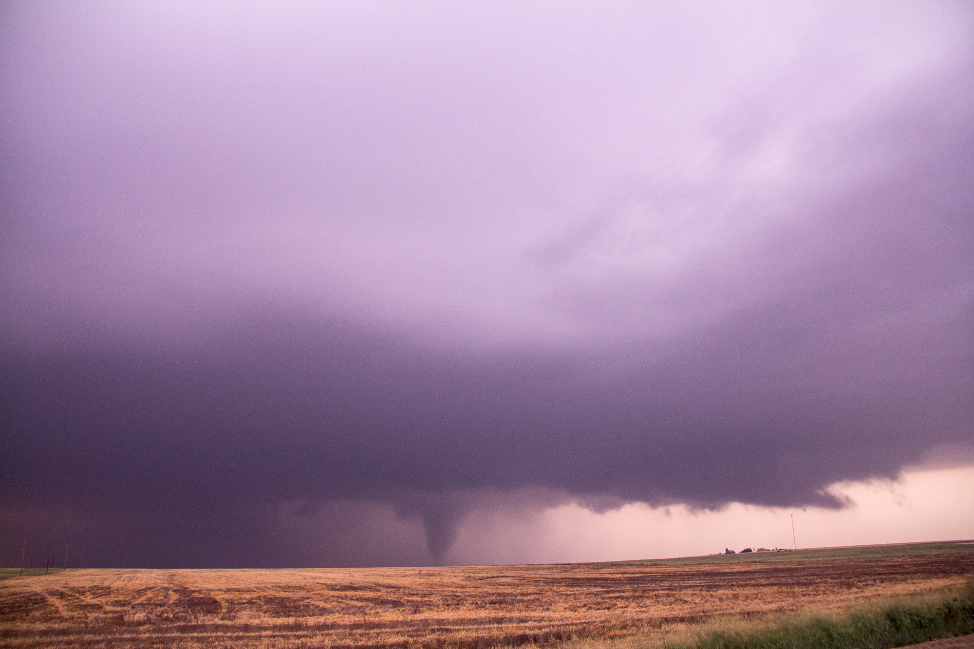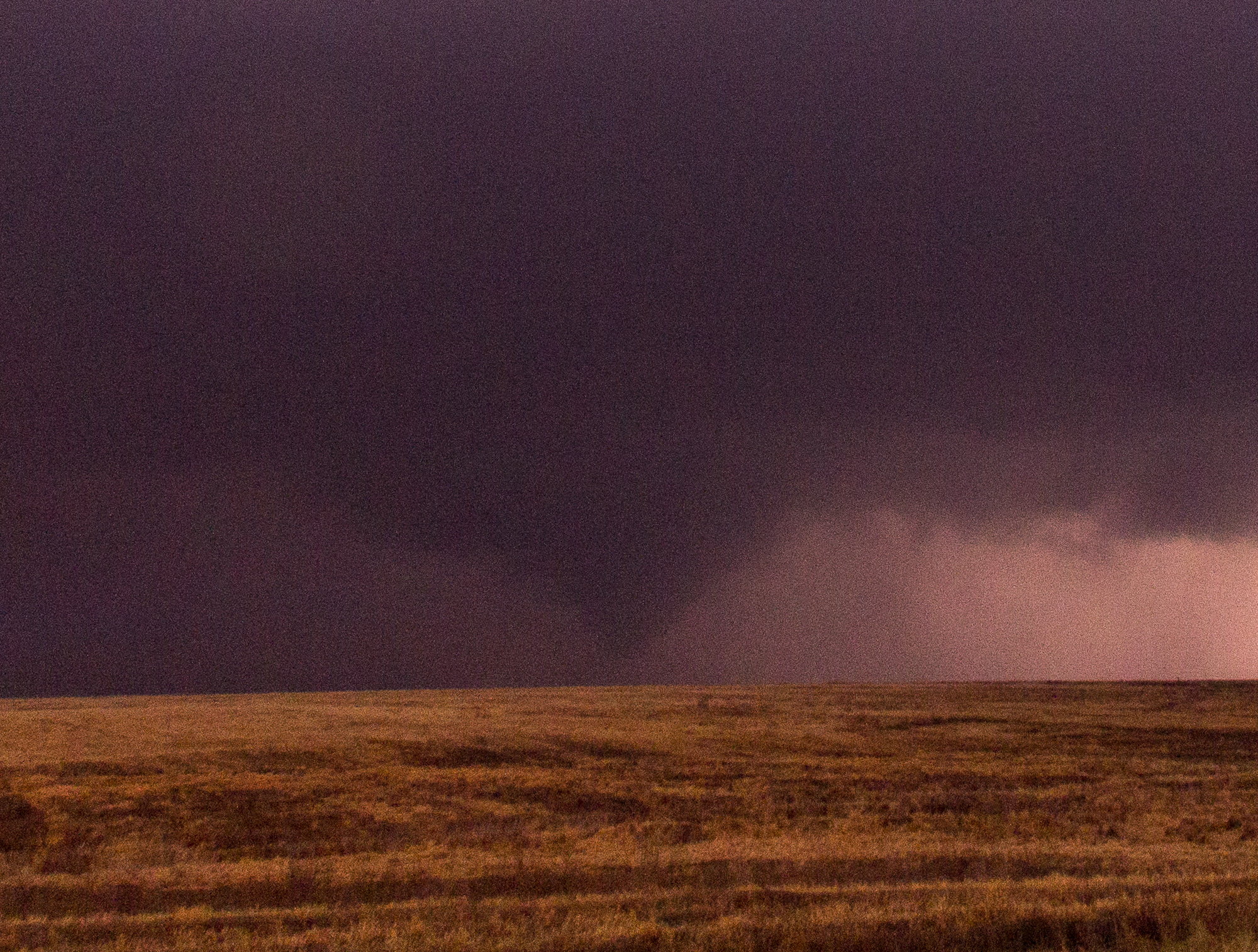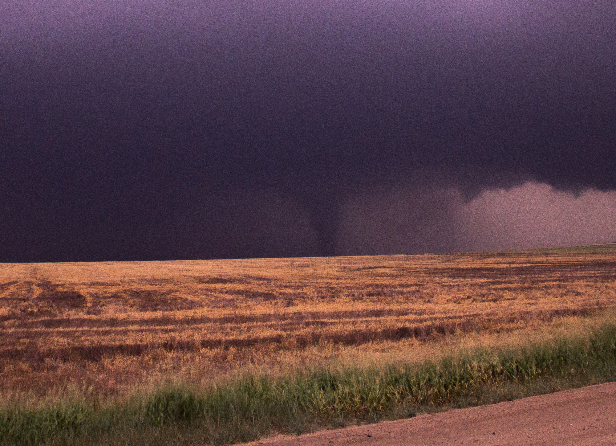 We sat just east of the town of Bunker Hill for quite awhile and eventually made hotel reservations in Dodge City and captured the sunset. It was about sunset when other chasers started reporting a tornado south of Russell so we decided to head that way.