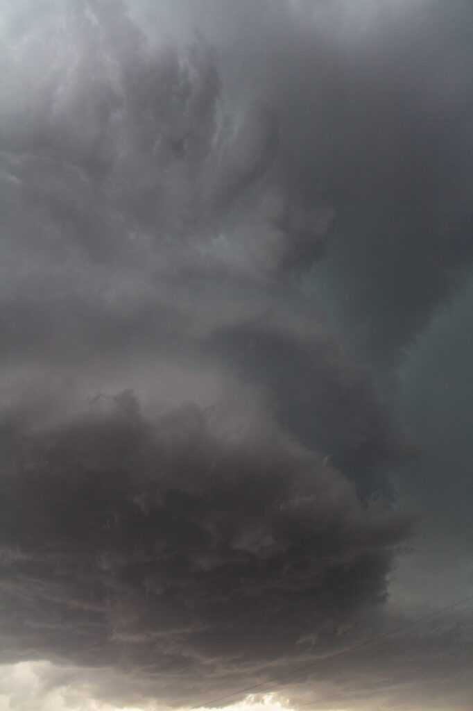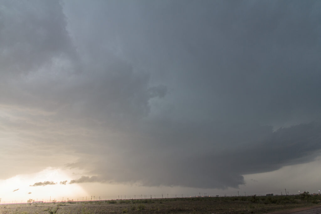 Eventually, we ended up back north and west of Hobbs near the most interesting part of the storm. It appeared our storm was contending with outflow from the storm to our north that had also developed. We witnessed a definite wall cloud and some rapid motion, but it seemed to be having cold air undercutting. It was extremely hard to give up on this storm, but we eventually had to and headed south again to try and keep up with the storm.
