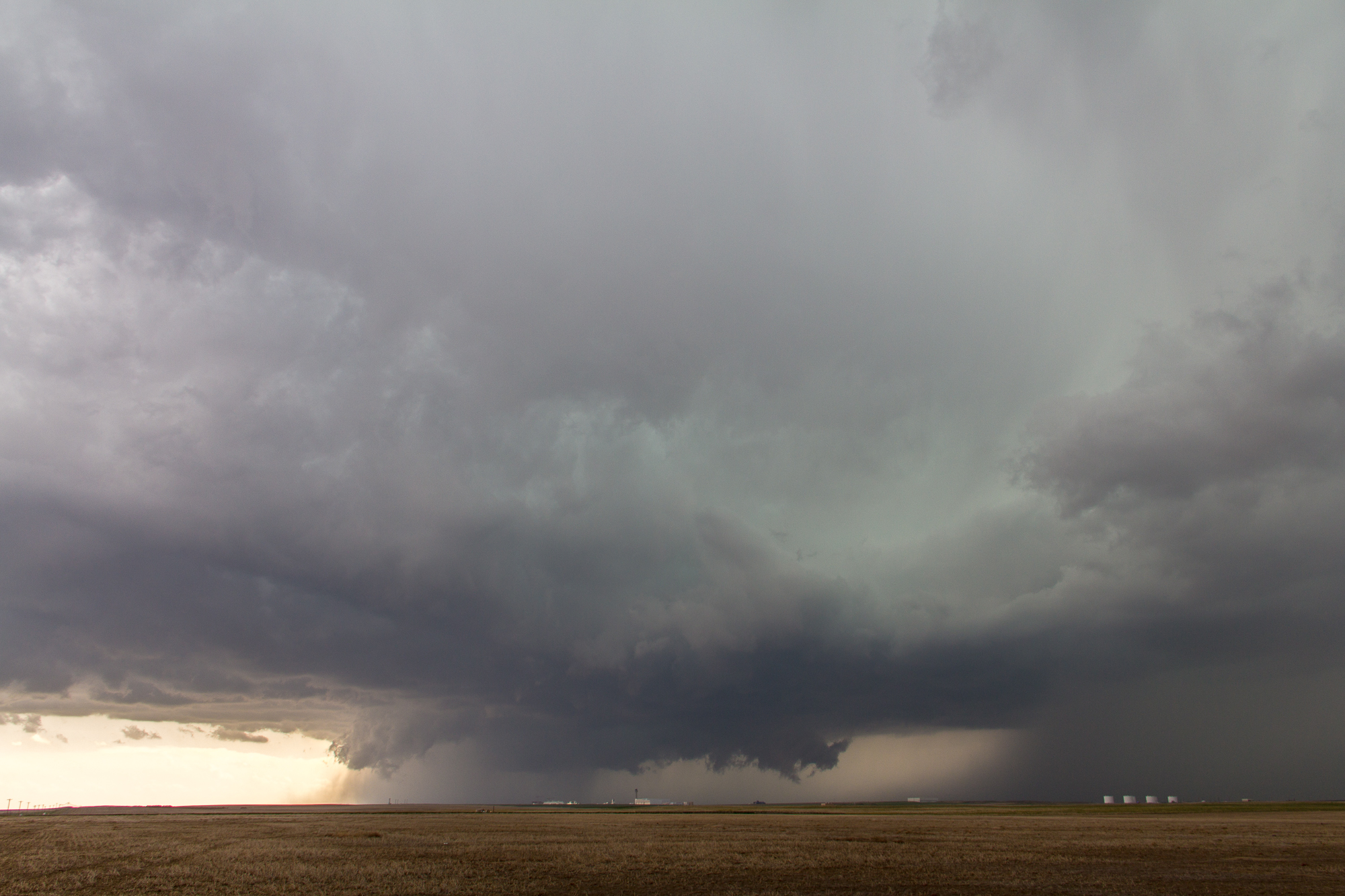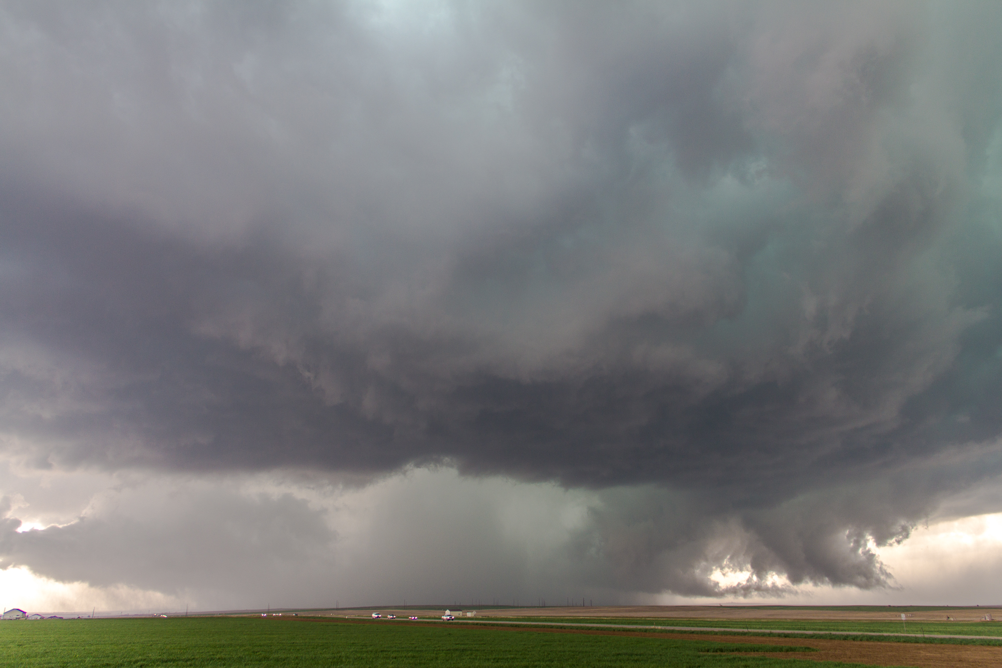 We stopped multiple times to keep ourselves positioned in the hook. Eventually, we observed a funnel which we were told by other chasers touched down. As we continued following the storm to the east on highway 79, the traffic became unbearable. We dropped south to Bennett and I-70.