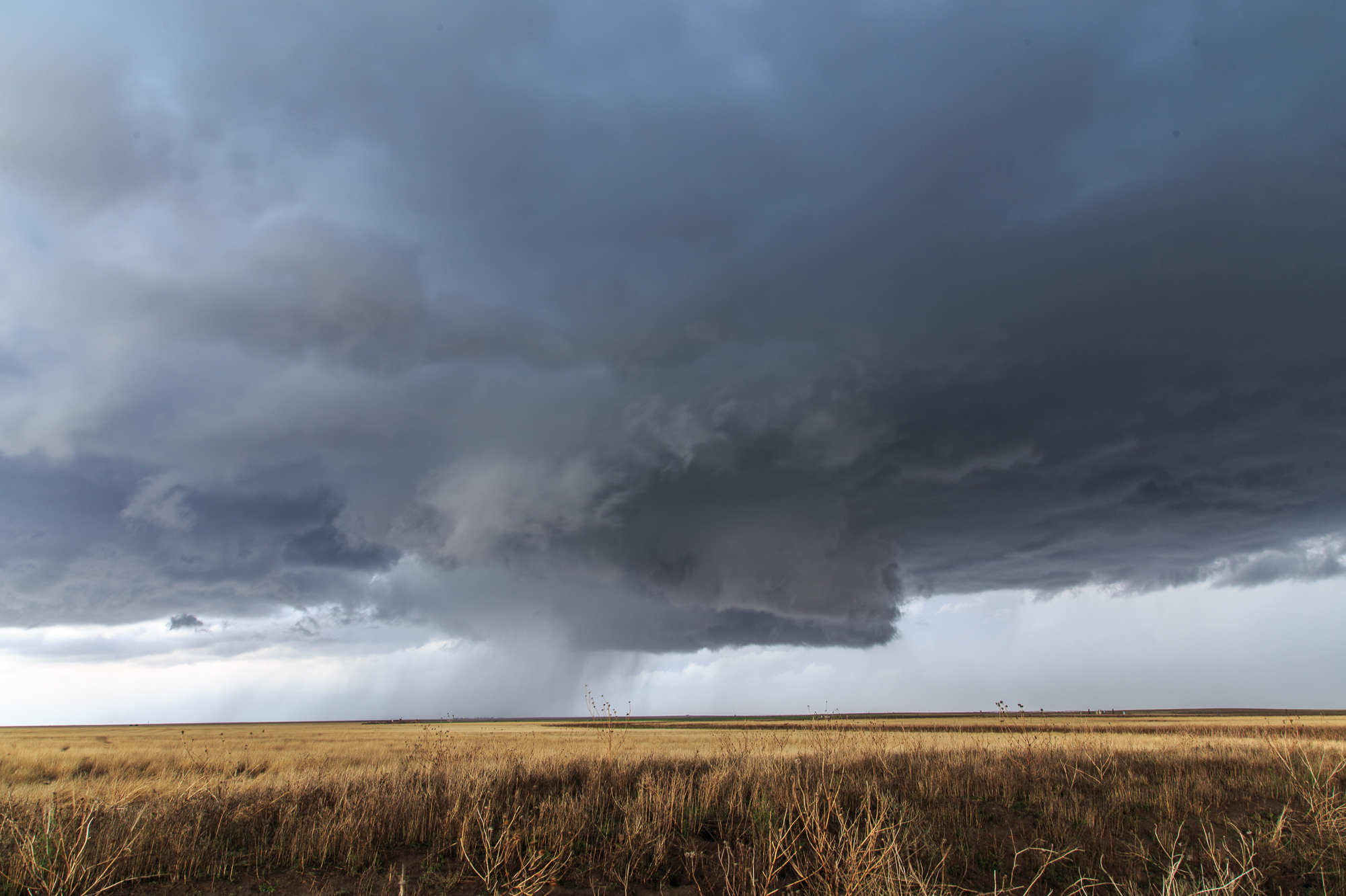 Eventually the storm seemed to again ramp up as we neared the OK/TX border. We had 2 really good cycles where the wall cloud seemed beefy again, but both blew out as quickly as they came and we were left with a storm that seemed on life support in upper 40s dews. We ran into Mike and Connor on a back road southwest of Eva, OK with defeat on our faces. The sun was about to set and this storm wasn’t going to do it.