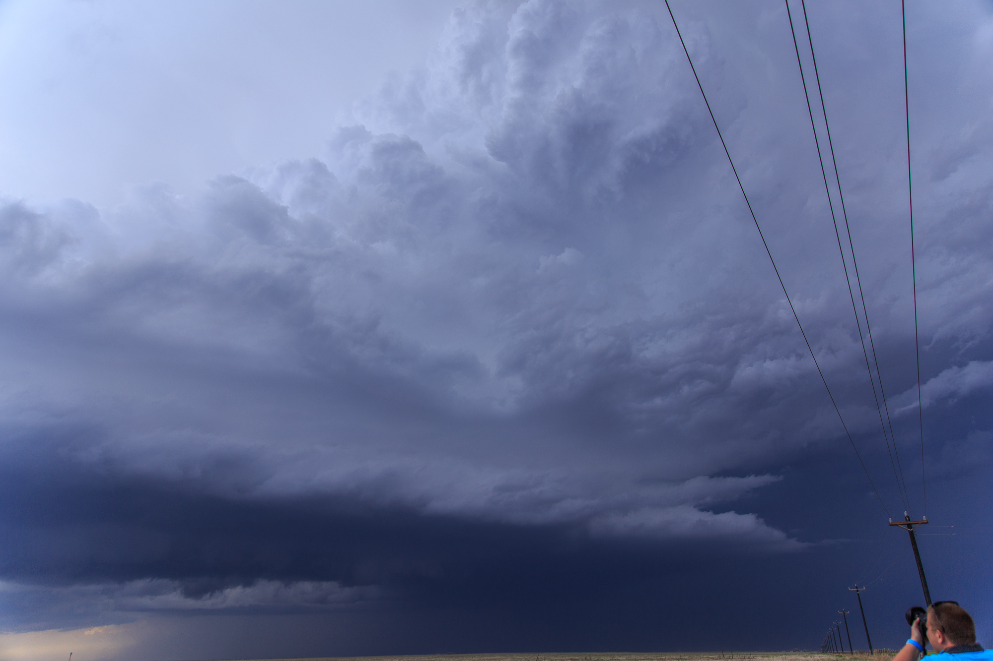 We left Norman shortly after noon and took our time somewhat to go west on I-40, stopping to eat in Weatherford and for gas twice on the way out. We also spent some time at the Allsups in Vega before deciding to bite on the storm to the northwest. It didn’t look horribly organized and was still in a high temp/dew spread, but was obviously going to move into a better environment, although not a great environment. Dewpoints were struggling to the 50s that far west, but the hope was just for a good supercell at this point.