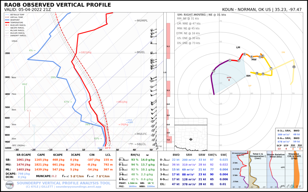 There was so much to like in central Oklahoma. The 850s were due south in the 19z mesoanalysis above. Mid level lapse rates were around 8 and the hodographs were looking pretty crazy. Here’s a comparison view between TLX (Oklahoma City) and Frederick Radar in SW Oklahoma.