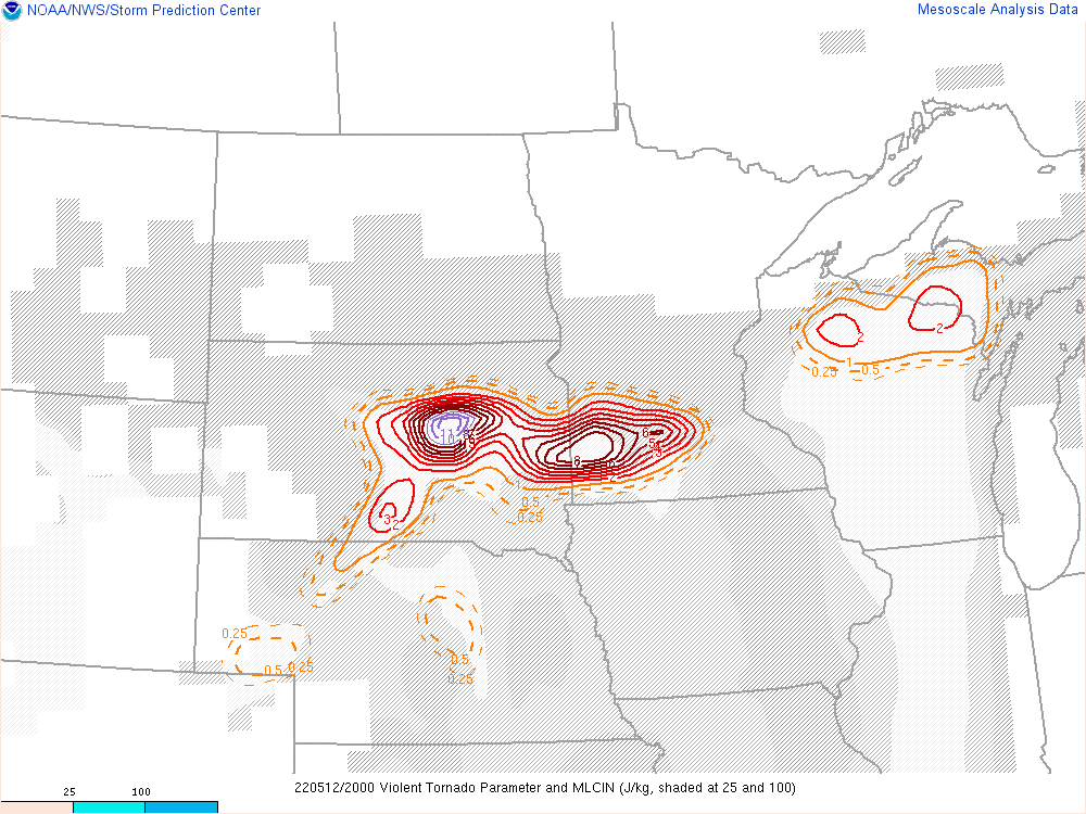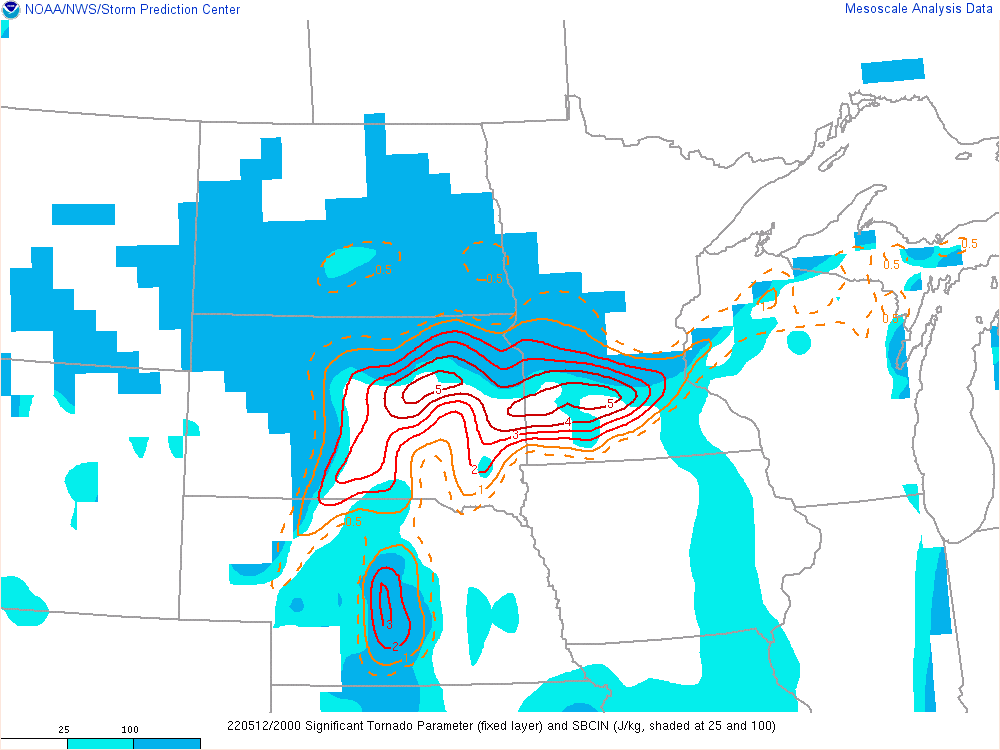 Complex forecast with a strong and highly amplified trough moving out from the Rockies. Storm mode would likely be linear pretty quickly, but the environment adjacent to the warm front/Triple point in South Dakota would be absolutely primed. If a discrete supercell could go up in that environment, it would be a prolific tornado producer.