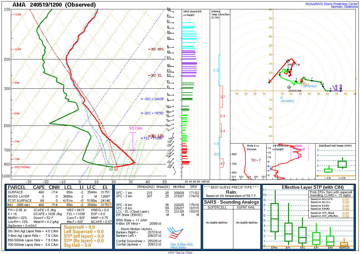 Morning soundings showed very moist environments at Norman and Fort Worth with very steep lapse rates. Amarillo also had some extremely steep lapse rates. This would likely work to keep the storm isolated as well.