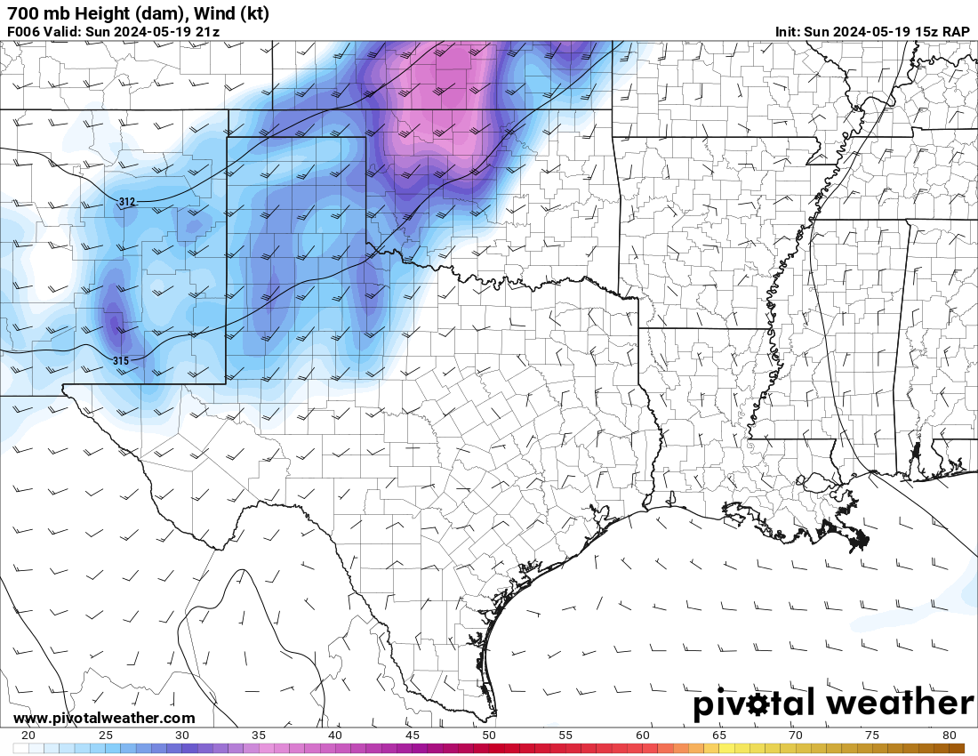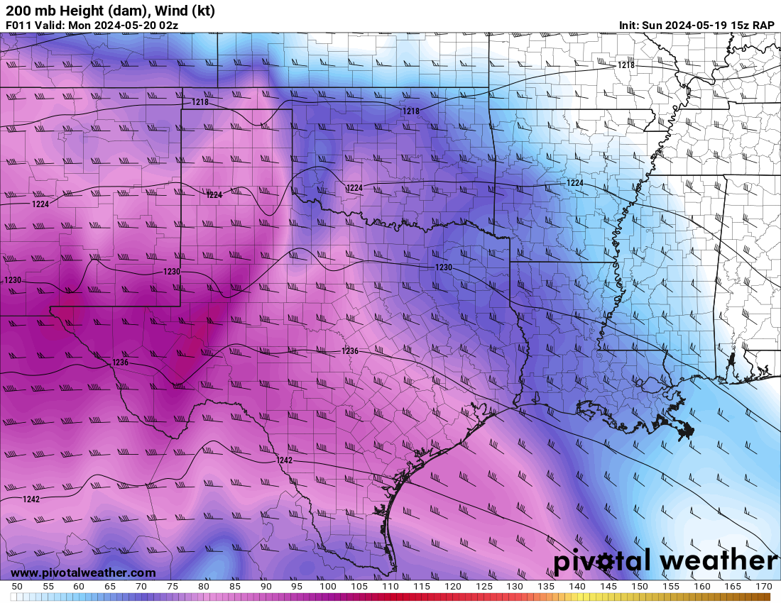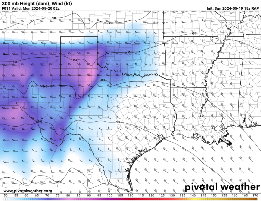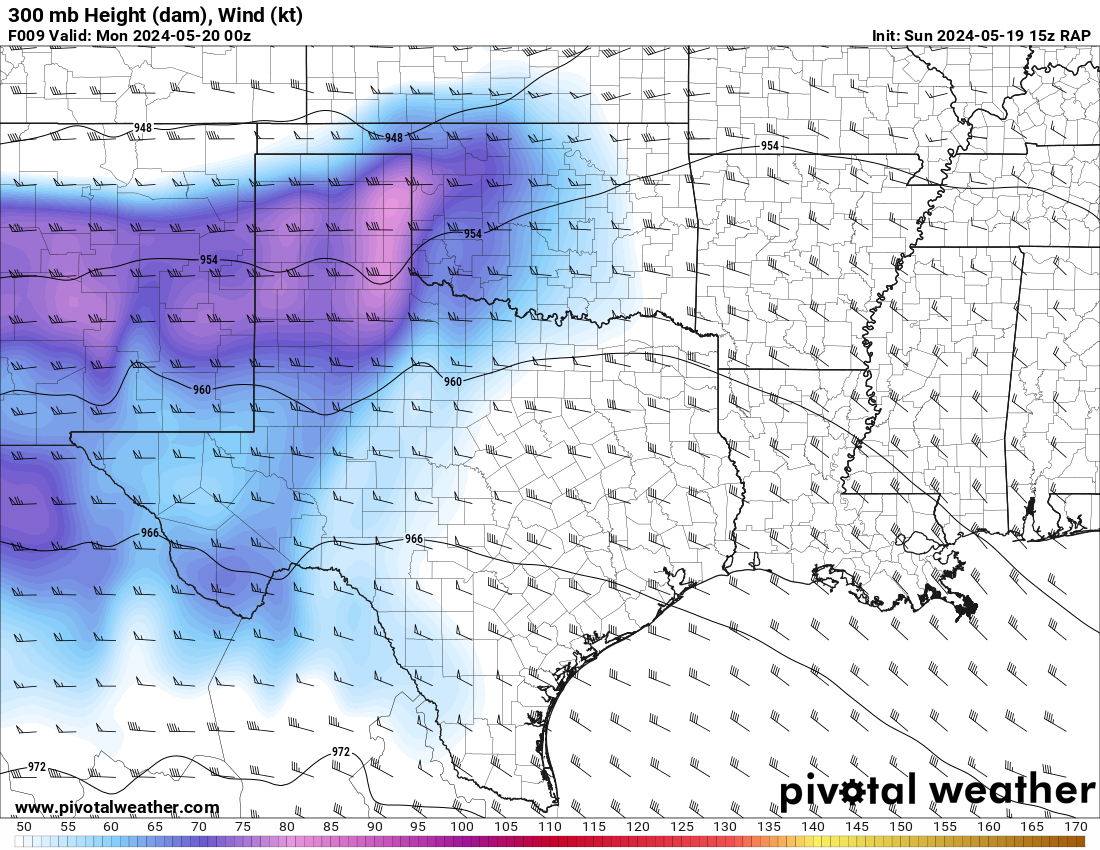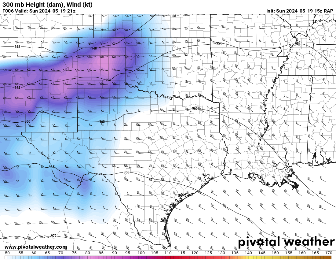 The RAP model was pretty consistent at hitting western Oklahoma with a strong 300mb jet and the low level jet (850mb) cranking up from 21 to 00Z and then really going wild after 00Z. After looking over the morning models, it seemed like somewhere in Western Oklahoma would be a good place to start.