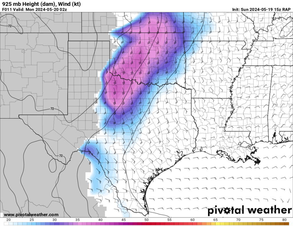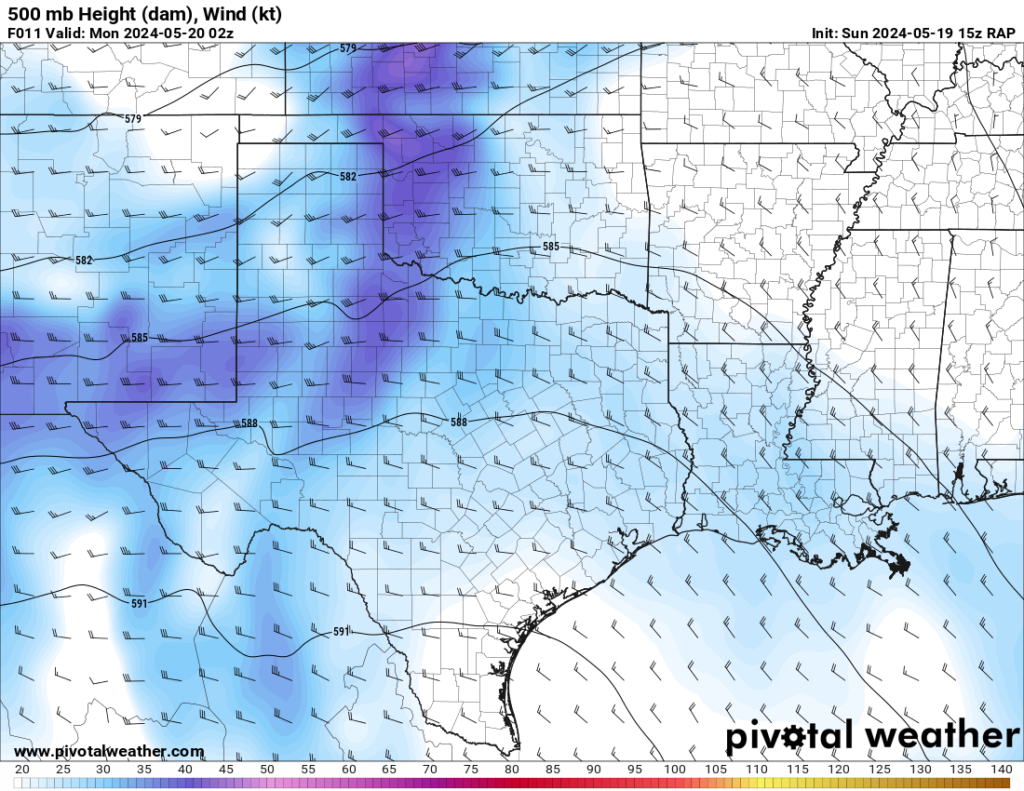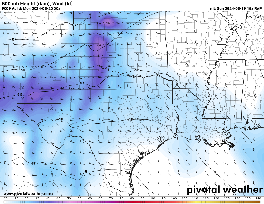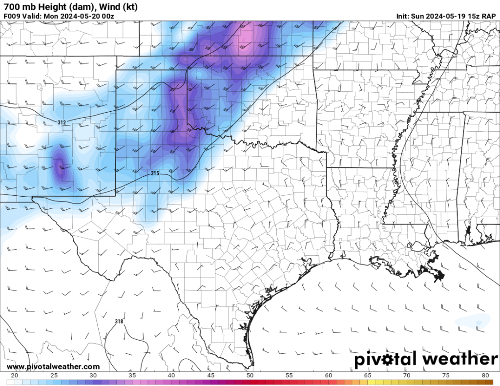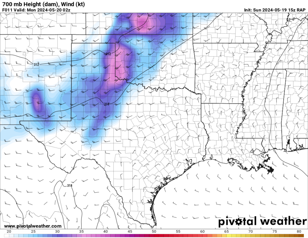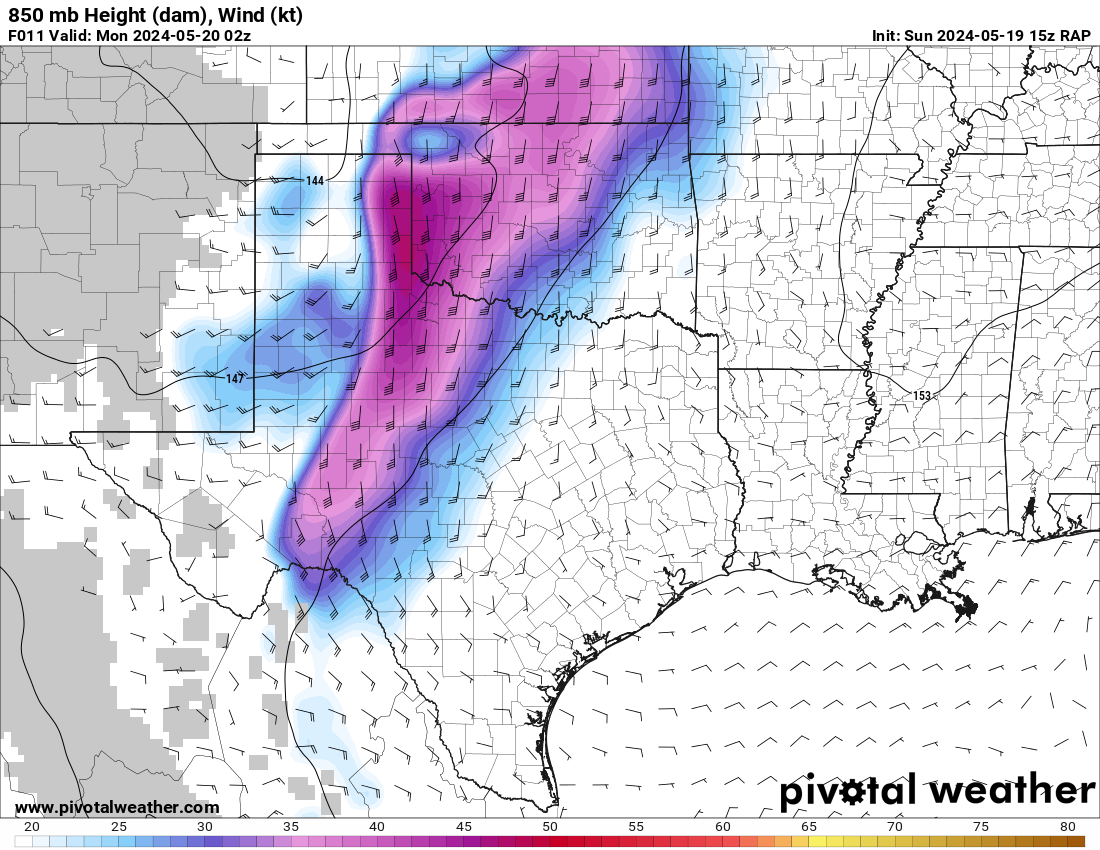 The RAP model was pretty consistent at hitting western Oklahoma with a strong 300mb jet and the low level jet (850mb) cranking up from 21 to 00Z and then really going wild after 00Z. After looking over the morning models, it seemed like somewhere in Western Oklahoma would be a good place to start.