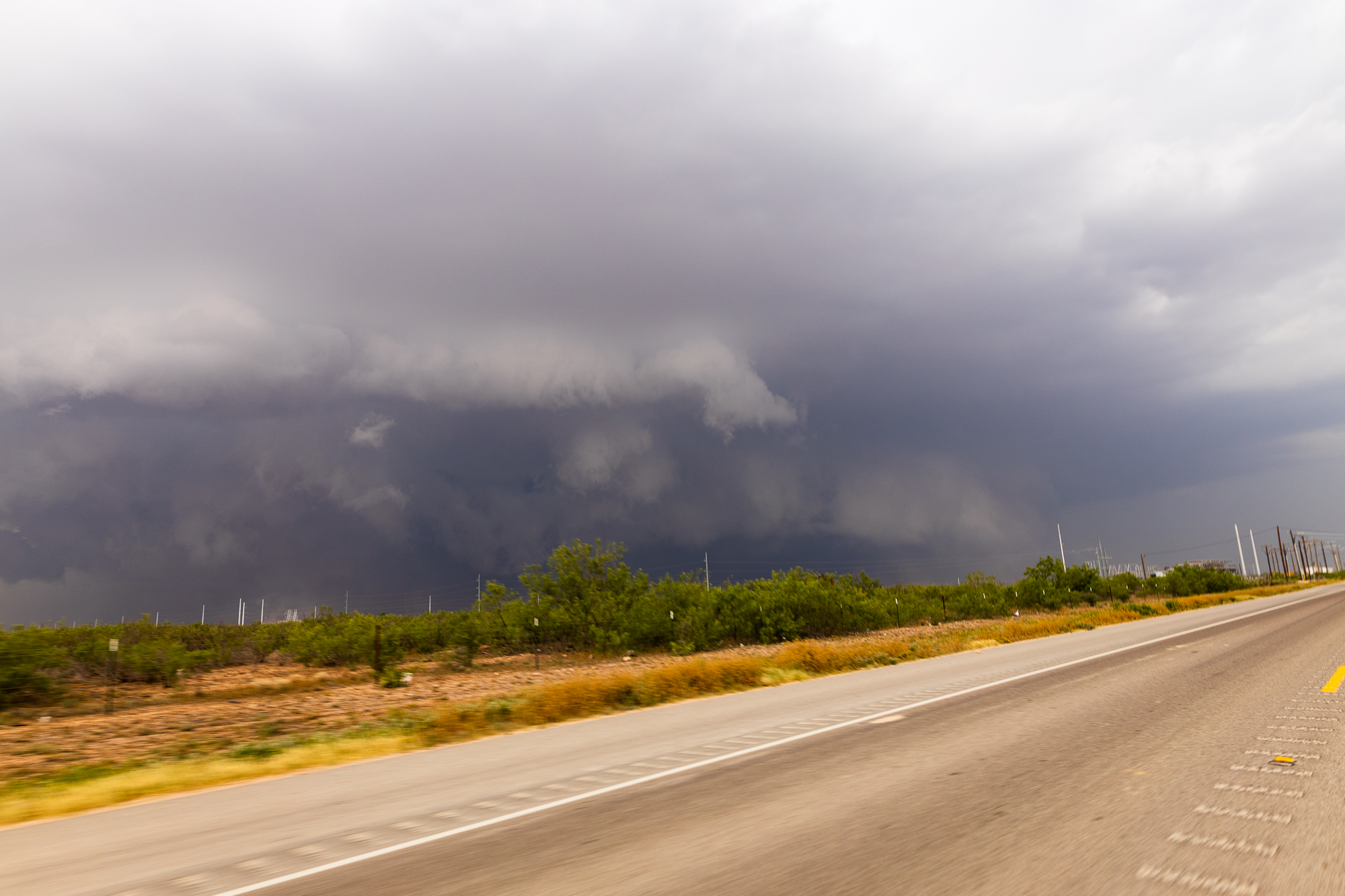 As I continued south, the storm became very pretty structured. Shawn and Hannah and others showed up and we chatted on the side of the road while watching the storm degrade. Eventually I bailed off to head home.