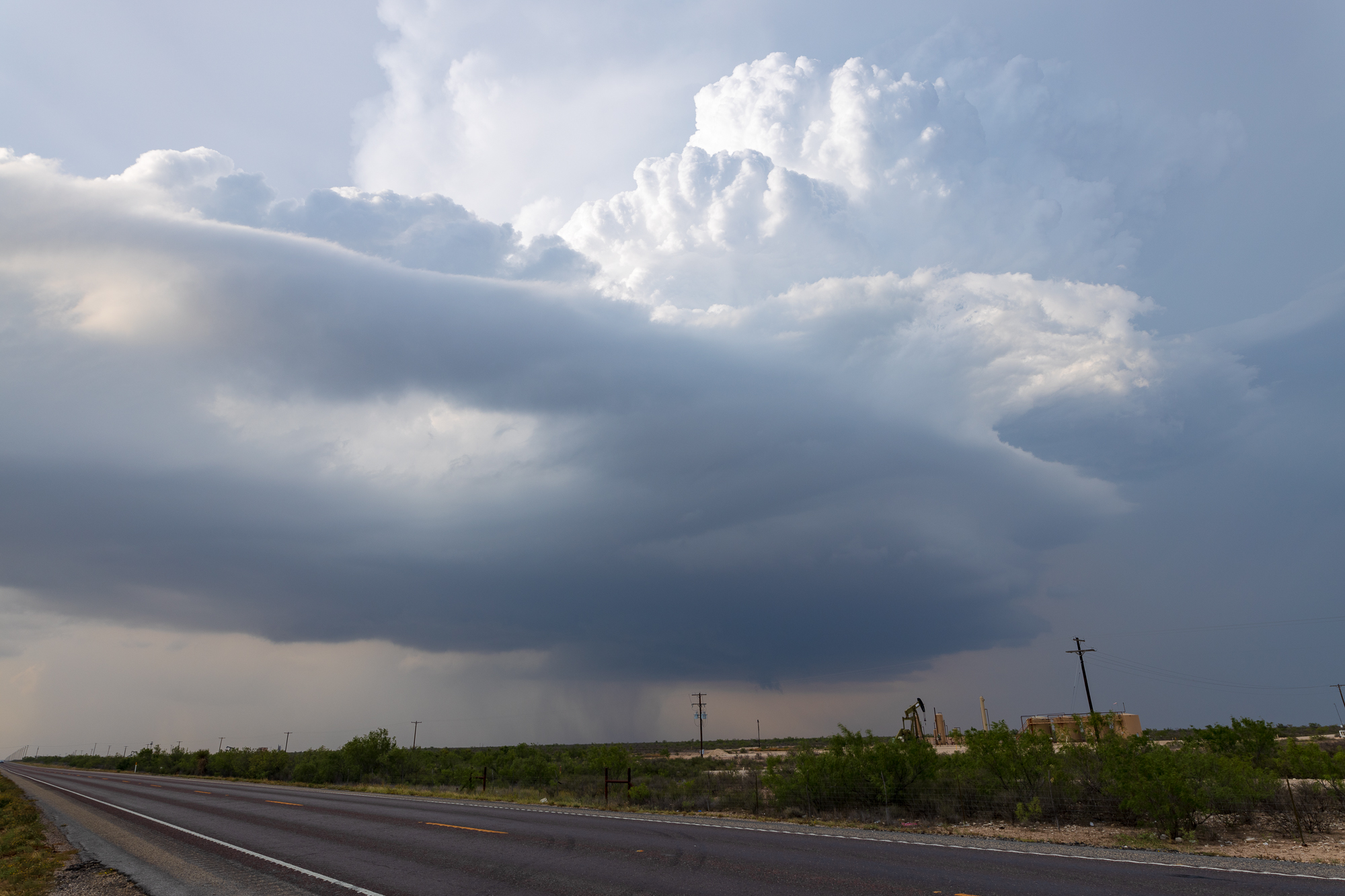 I finally found myself in position on that storm south of Midland. I observed a very large wall cloud/updraft area with a strong inflow. I would record this video before being overtaken by precipitation.