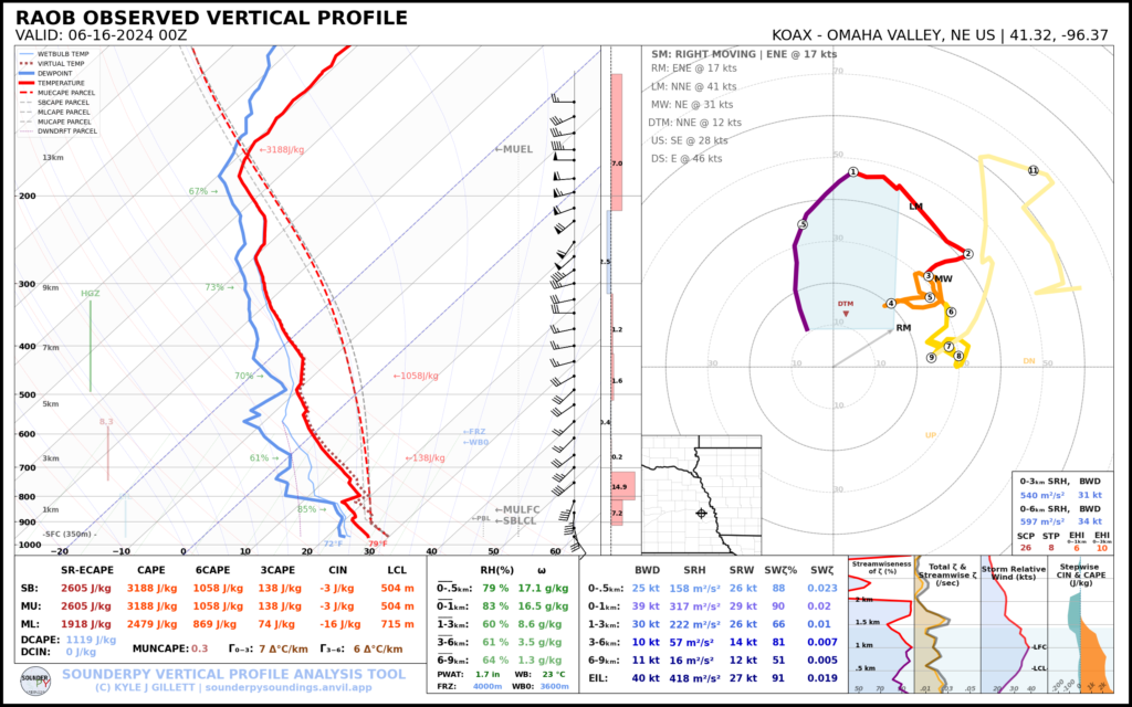 Both Hastings and Omaha radar VAD Hodograph looked pretty good, with turning in the low levels.