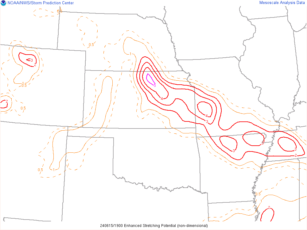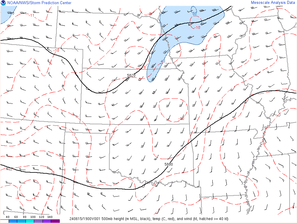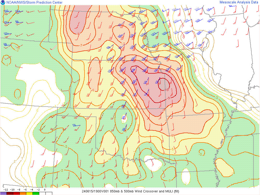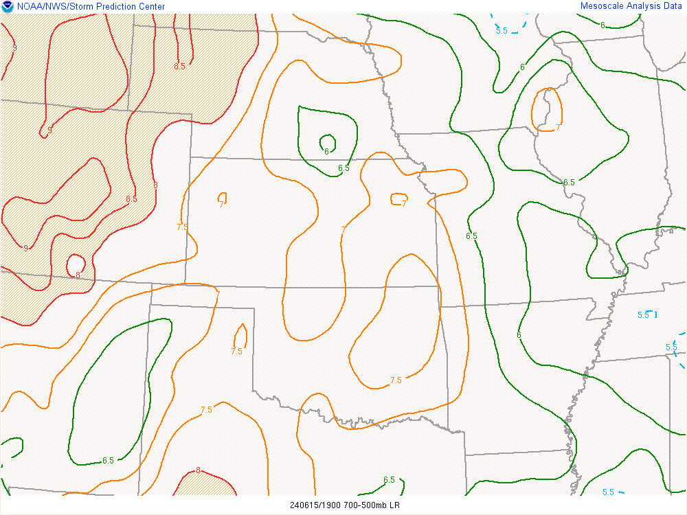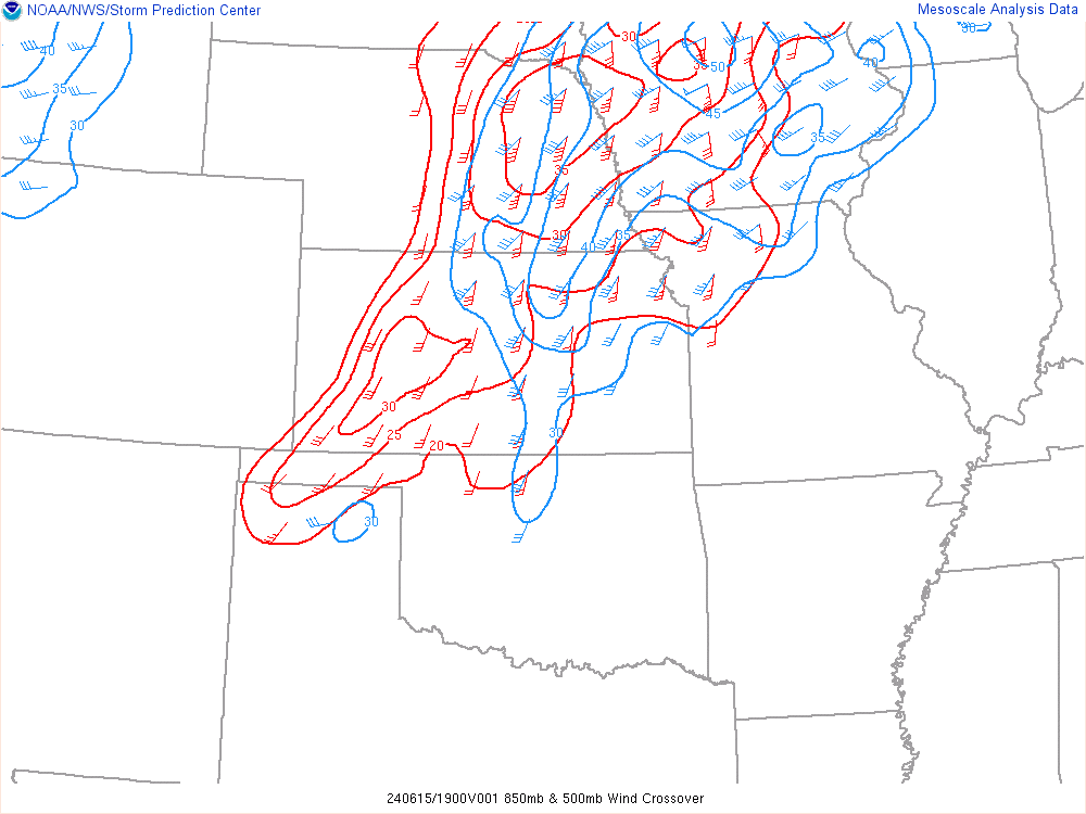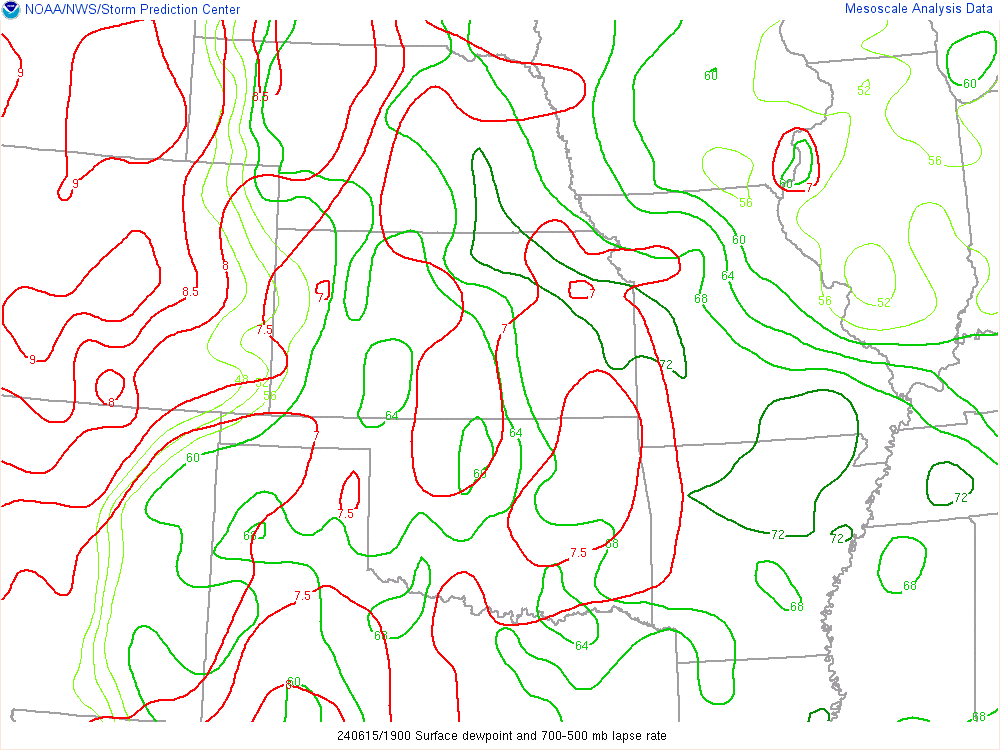 I was also very intrigued by the “bullet” I could see coming out of Kansas on the Mid Level Water Vapor Loop. It looks like some sort of a MCV or something underneath. This was obviously the cause of the updrafts along the outflow boundary in Kansas.