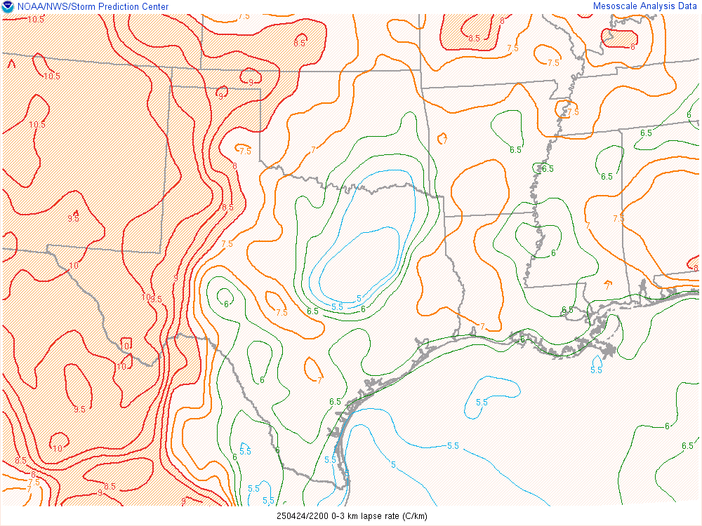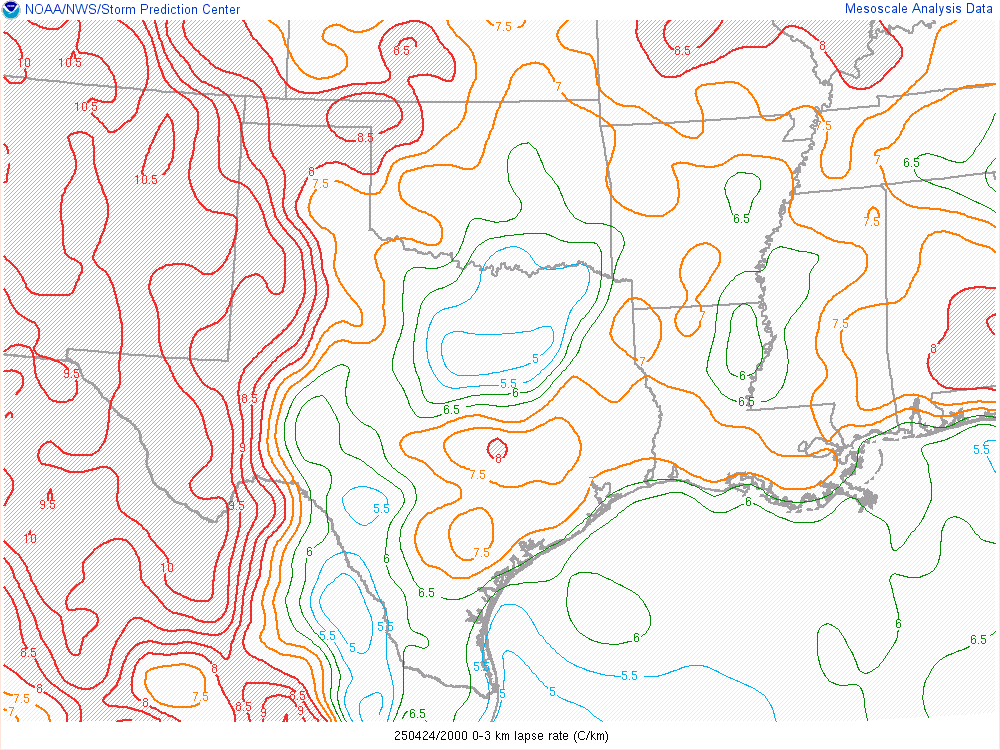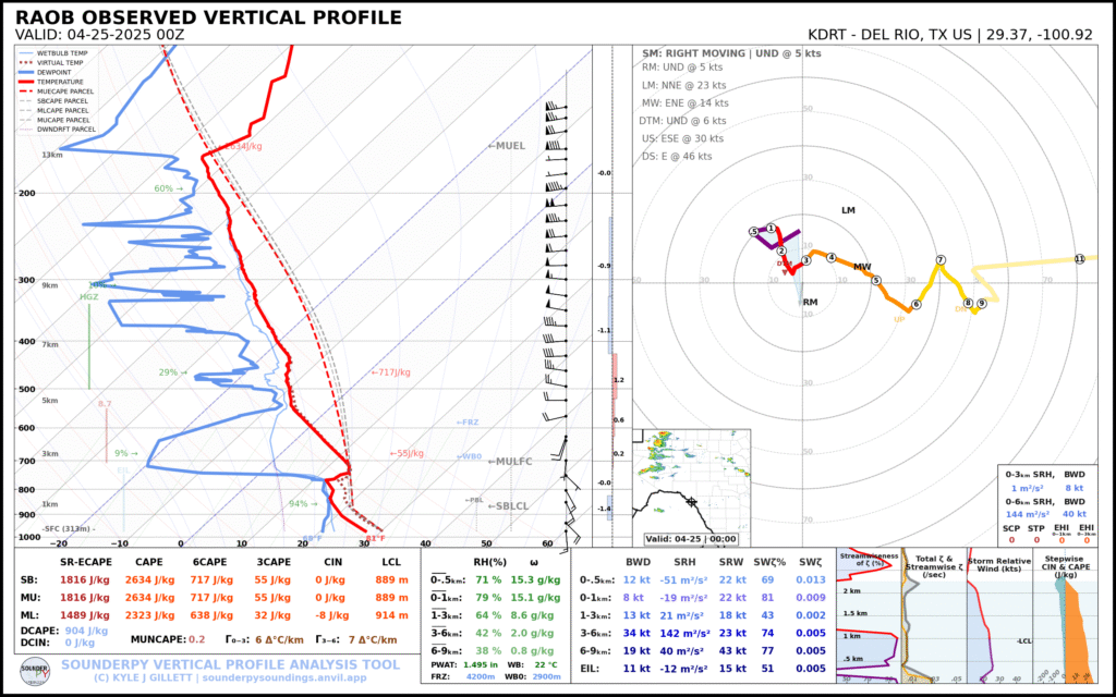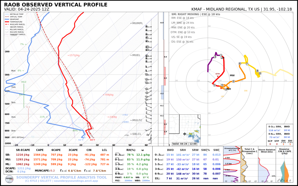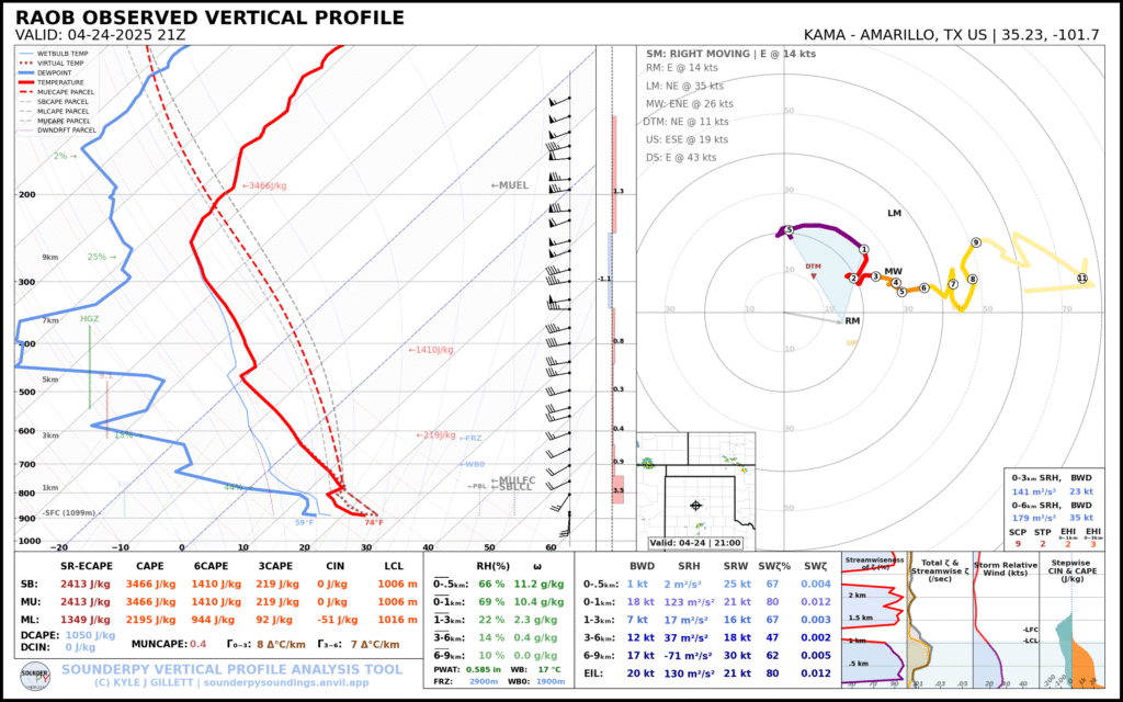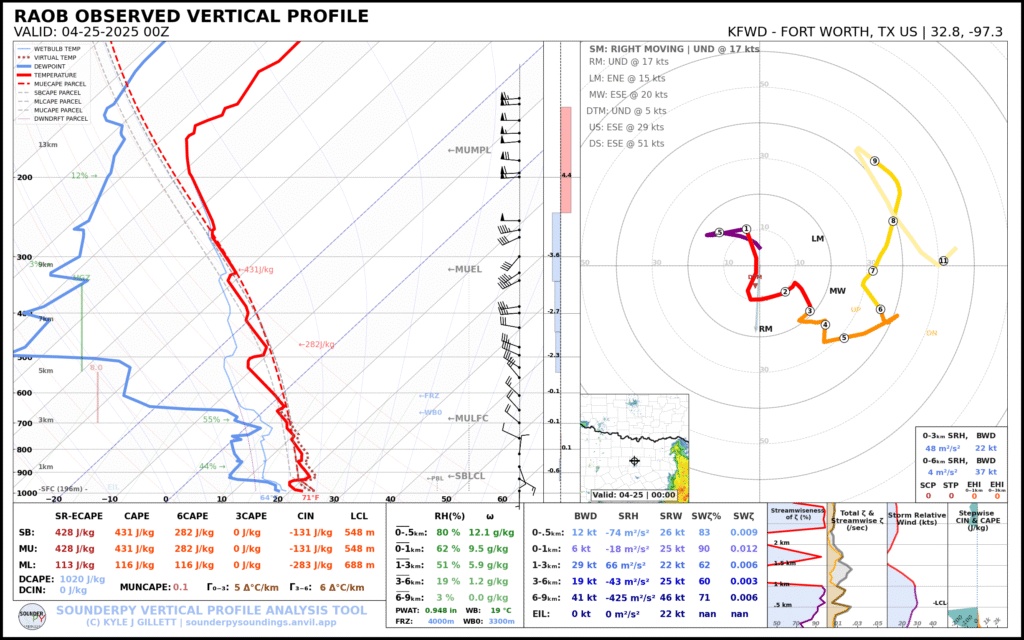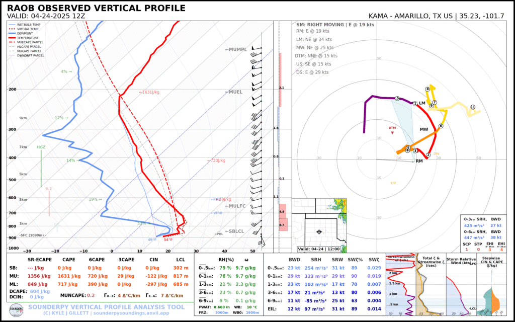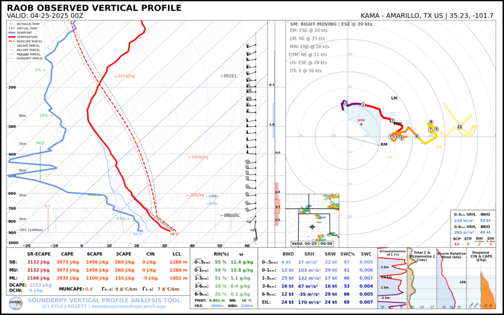 The most important 00Z RAOB was from Amarillo, showing a very good thermal profile and reasonably most environment.