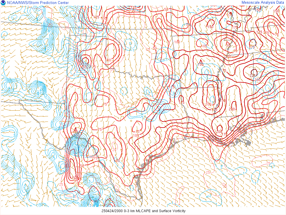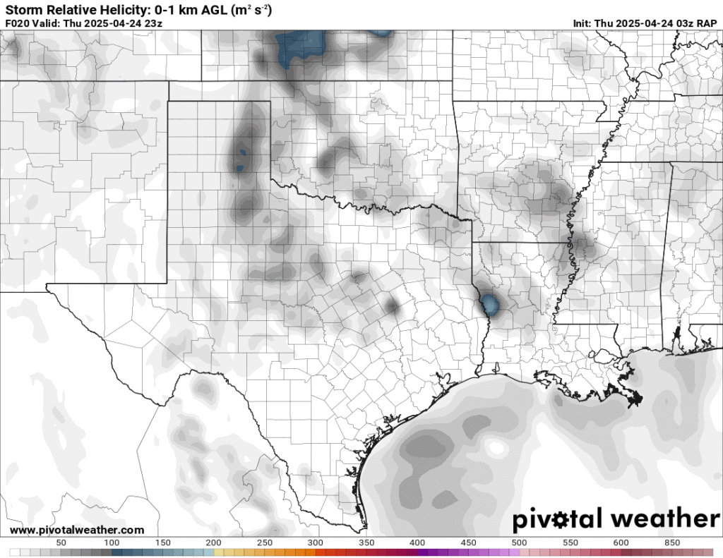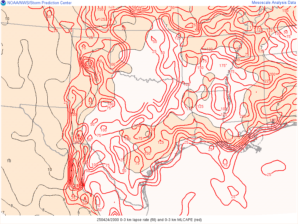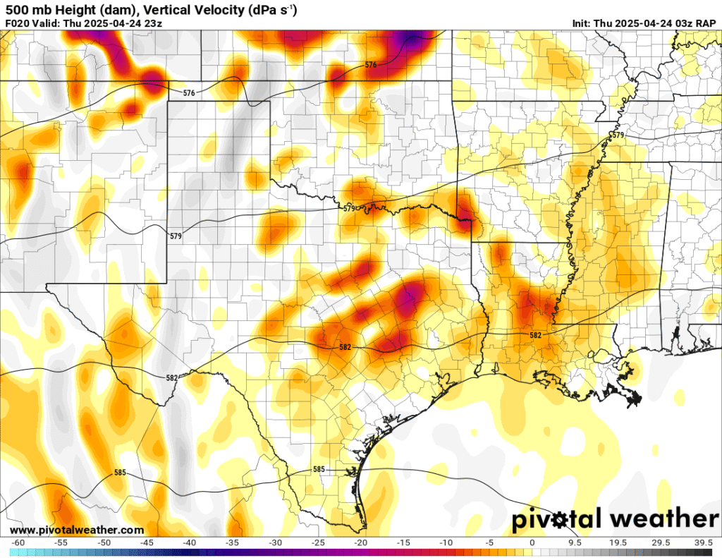 I was on the fence about chasing on Thursday the 24th. I awoke to our normal springtime morning MCS rolling through the OKC metro. The previous day, the 23rd, was a prolific hail and structure producer. However, dewpoints were higher on the 24th as well as boundaries to play with. Either way, it appeared to be a later show, so I’d have some time to mull it over as I got some work done during the day.