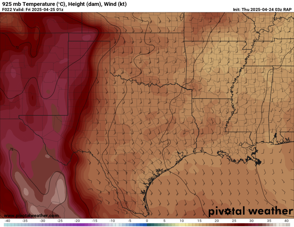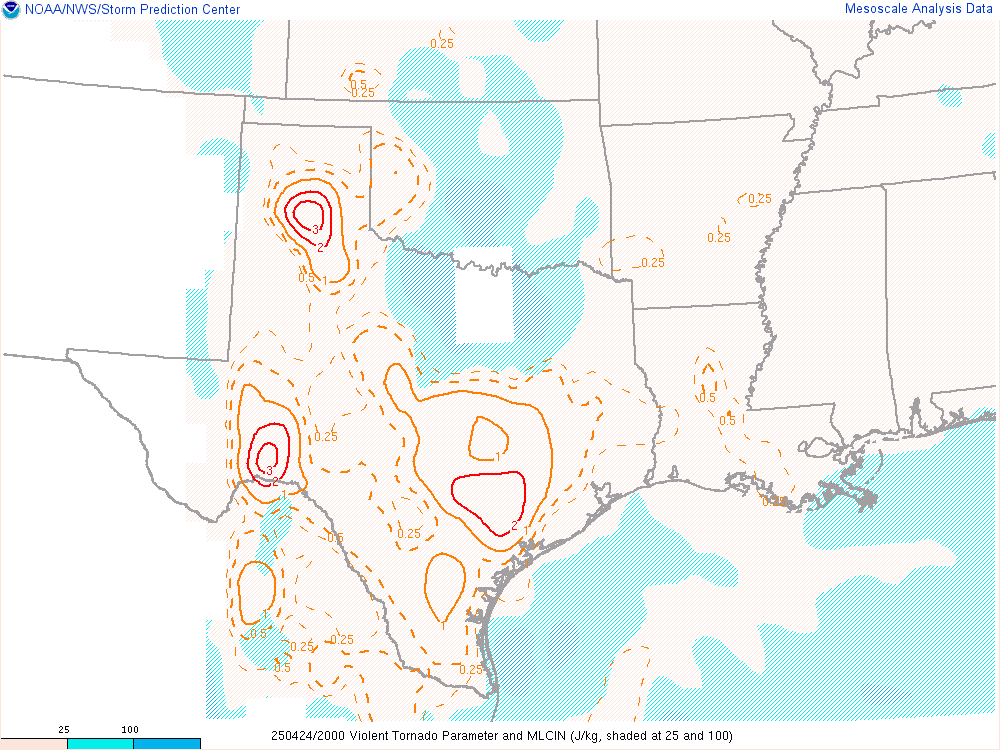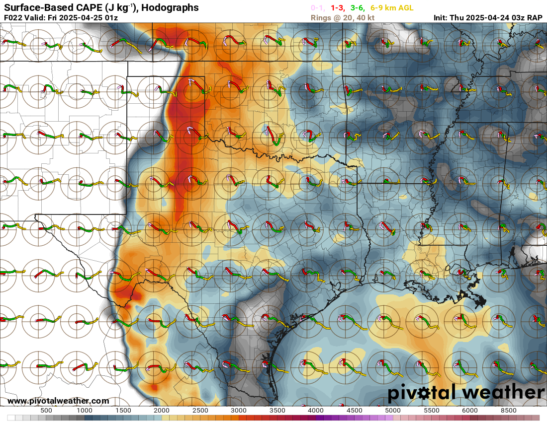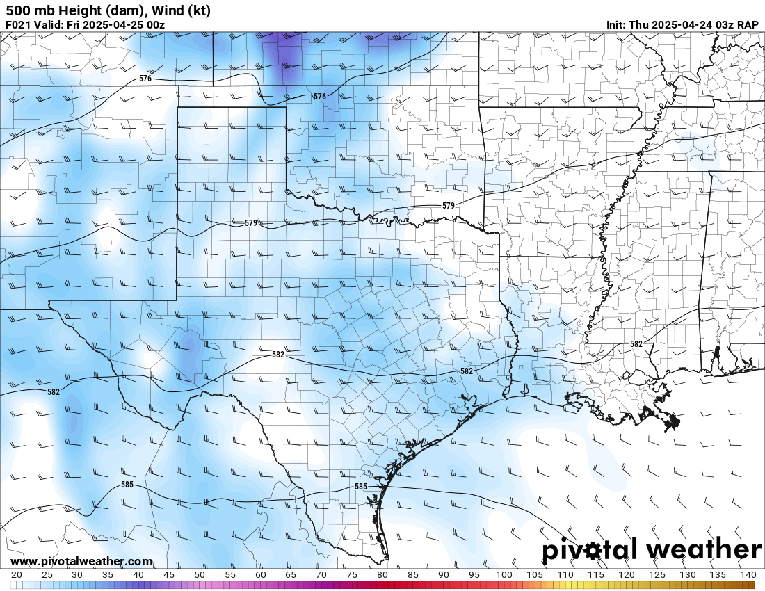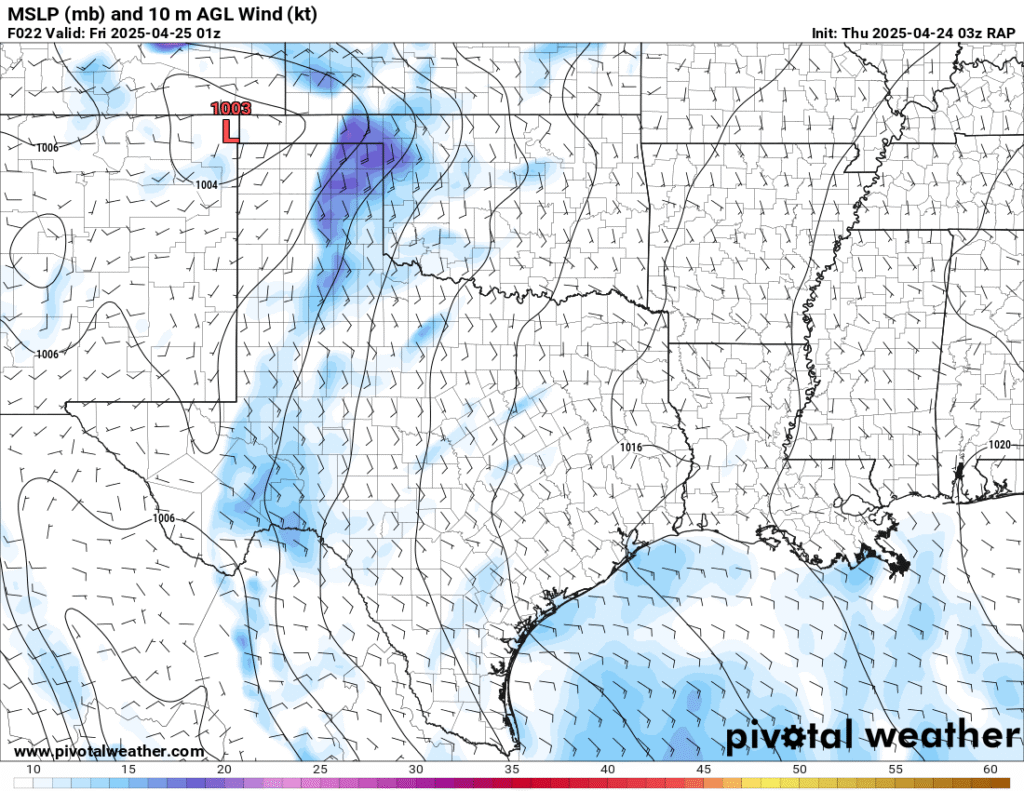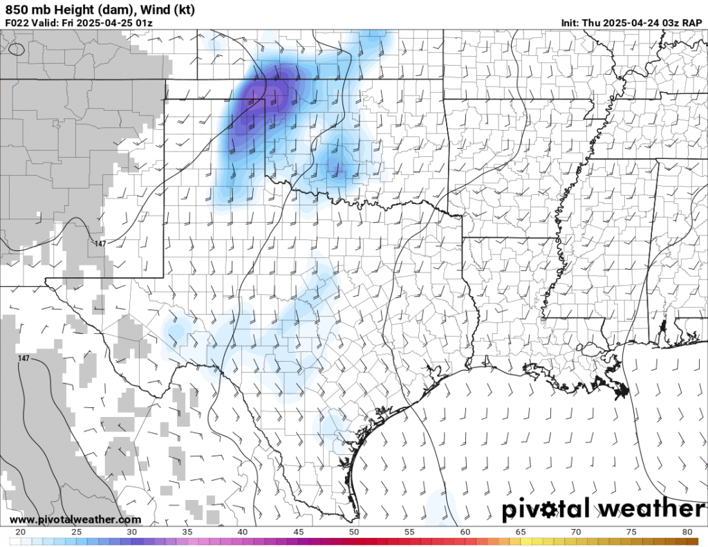 The 00Z NAM on the 24th reveals a low centered near Kenton OK and a strong impulse at 200mb across the texas panhandle. A dryline runs from the low in the panhandle south into Mexico.