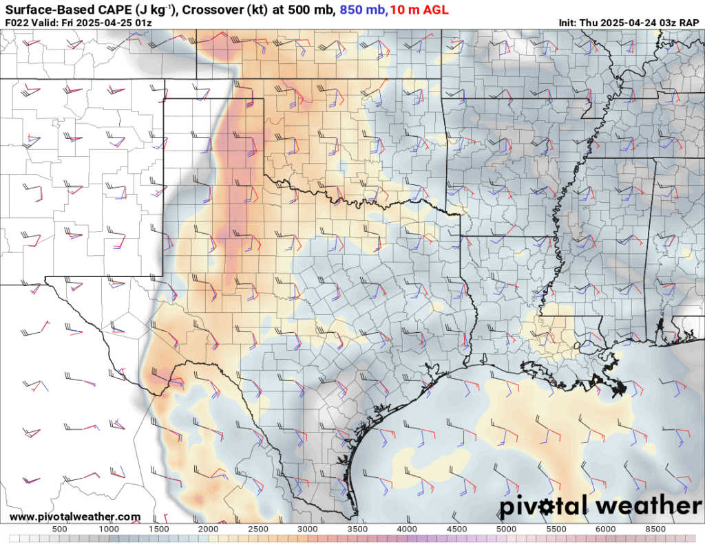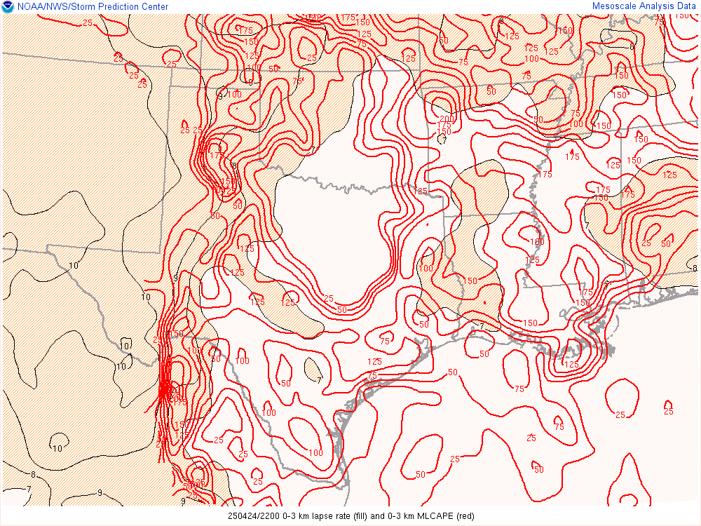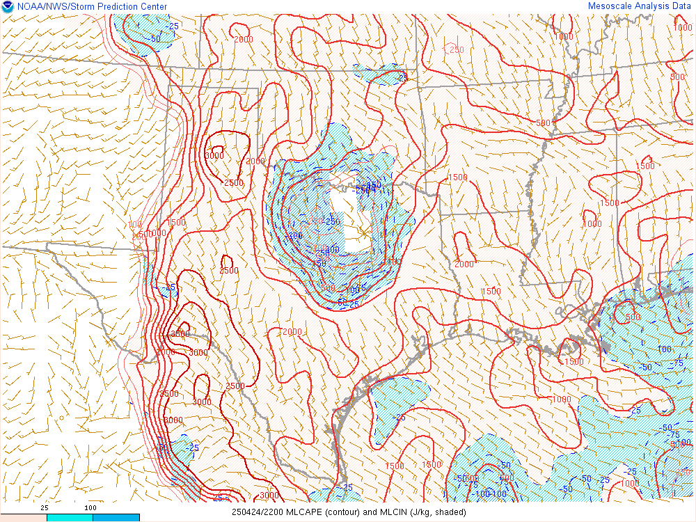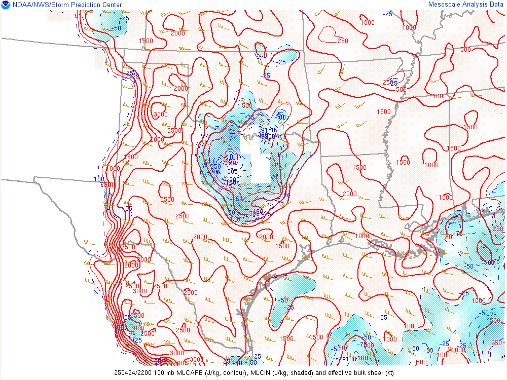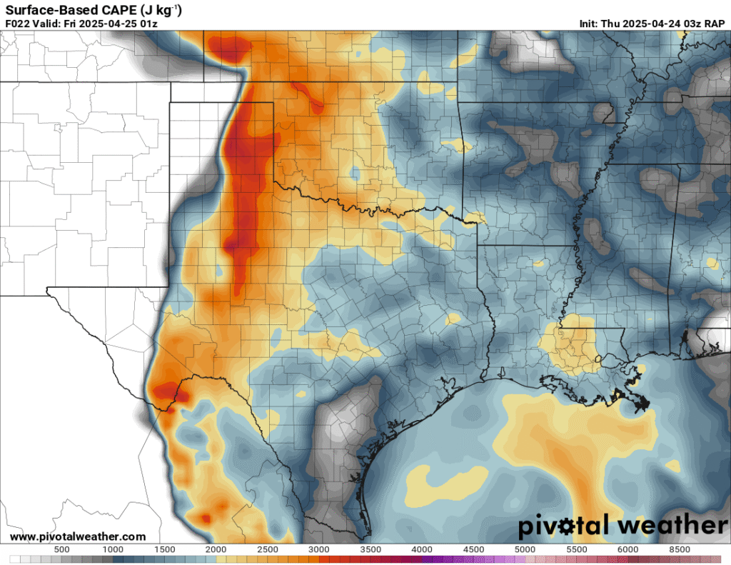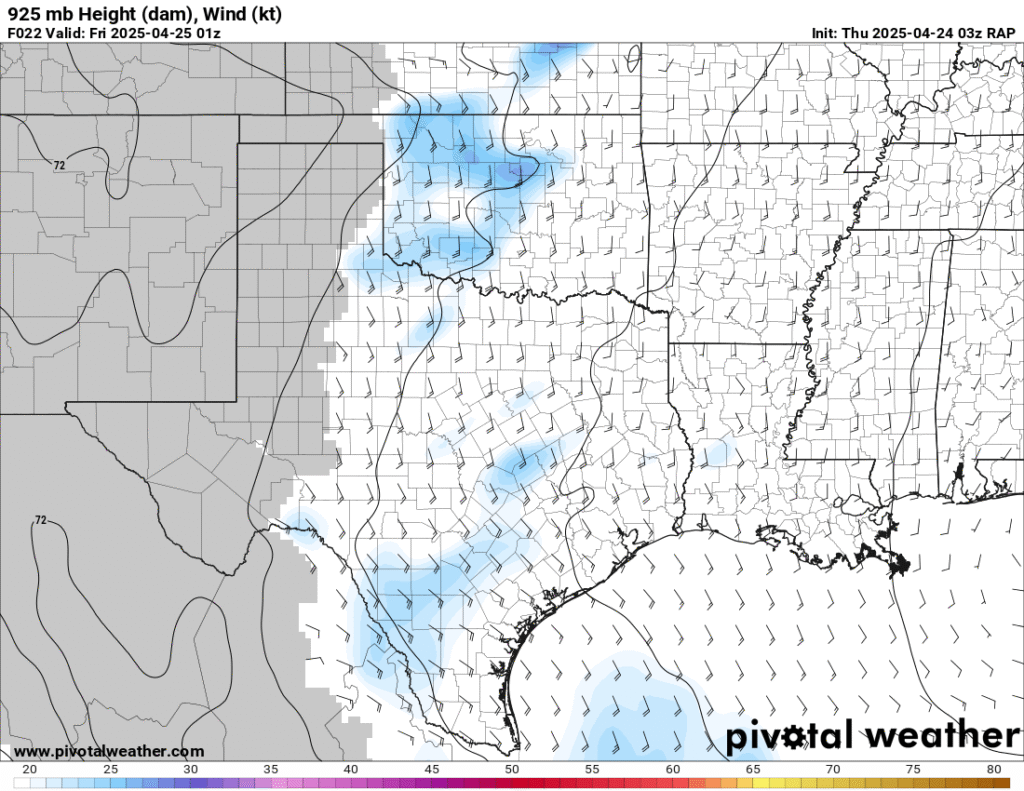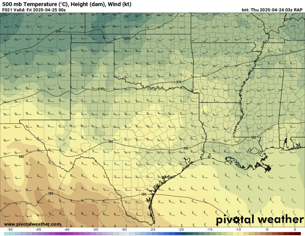 The 00Z NAM on the 24th reveals a low centered near Kenton OK and a strong impulse at 200mb across the texas panhandle. A dryline runs from the low in the panhandle south into Mexico.