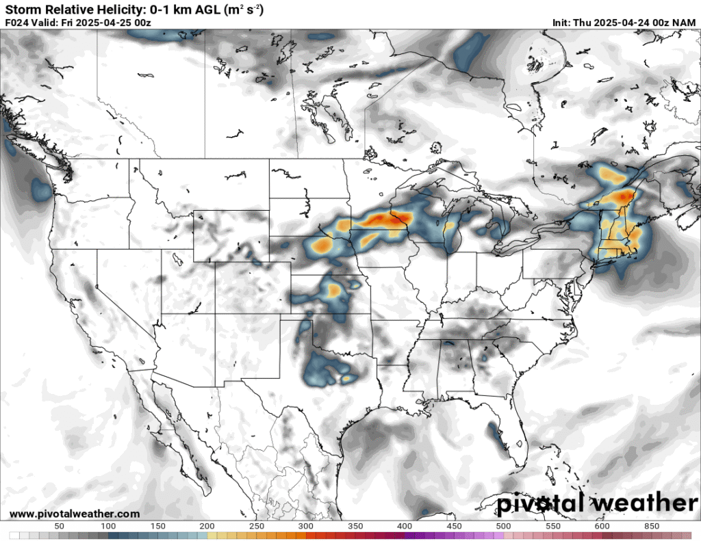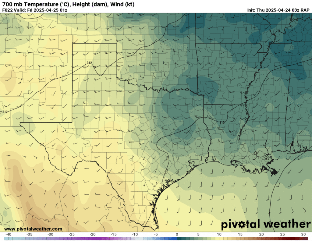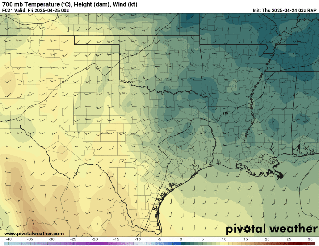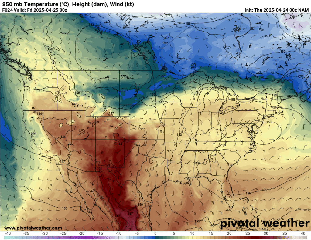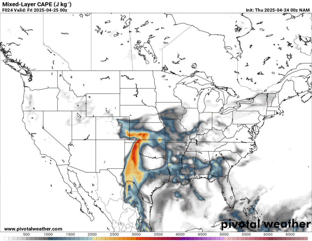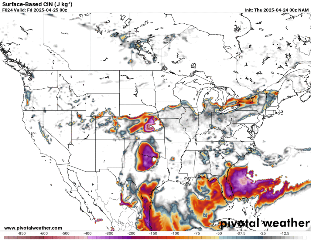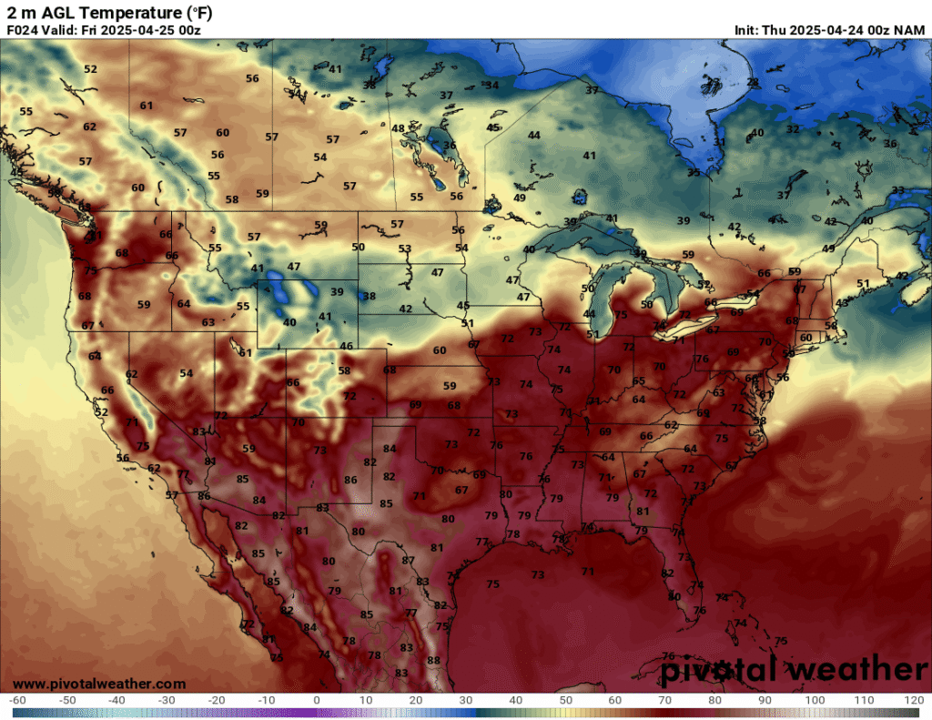 00Z NAM – 24 hour forecast for 7pm CDT April 24, 2025