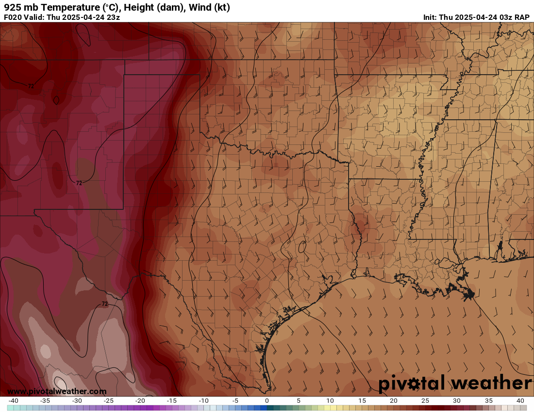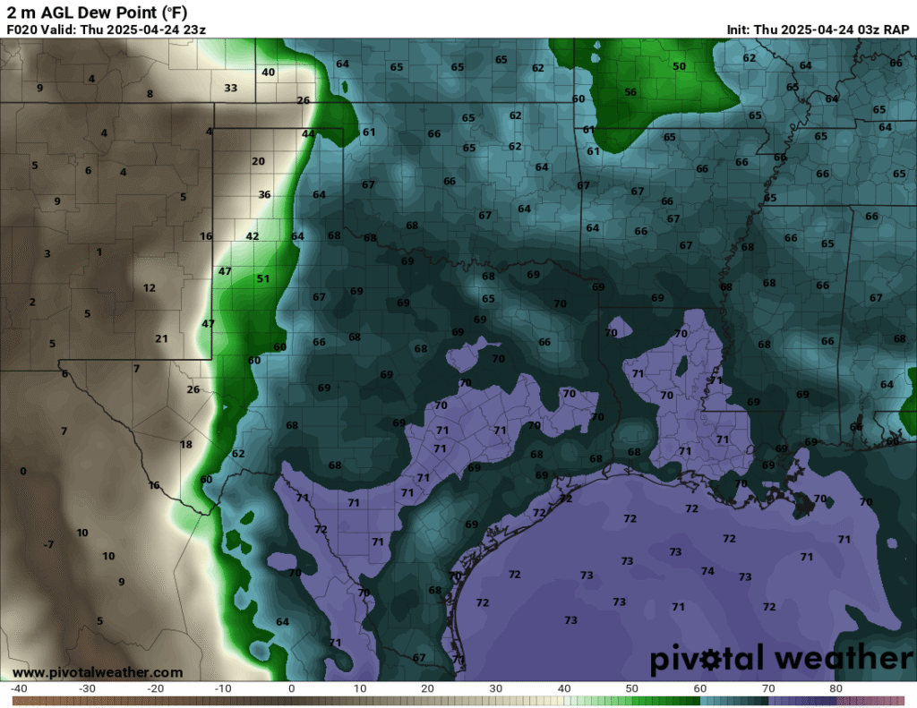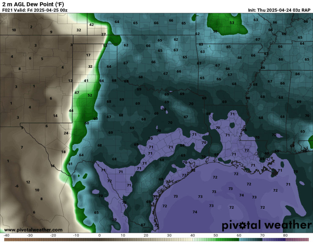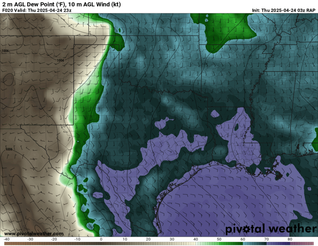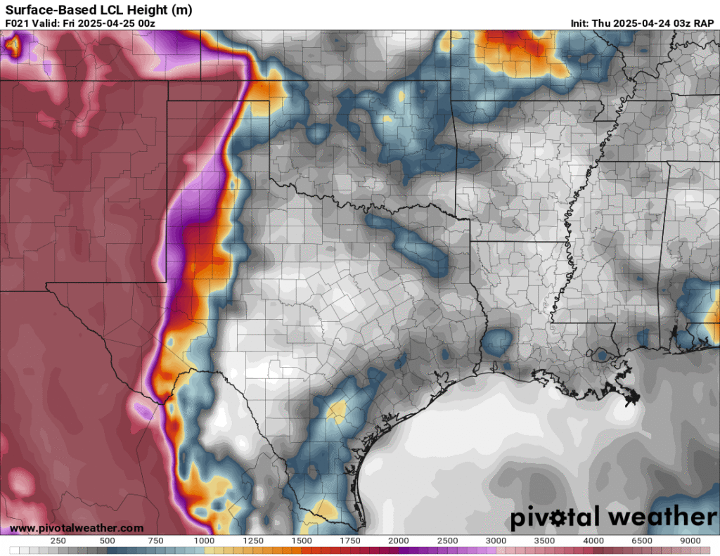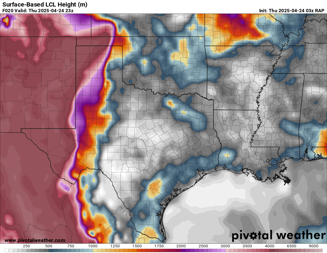 The 03Z RAP showing a similar situation with deep moisture making it to the caprock, with a real stout dryline in the northern Texas panhandle.