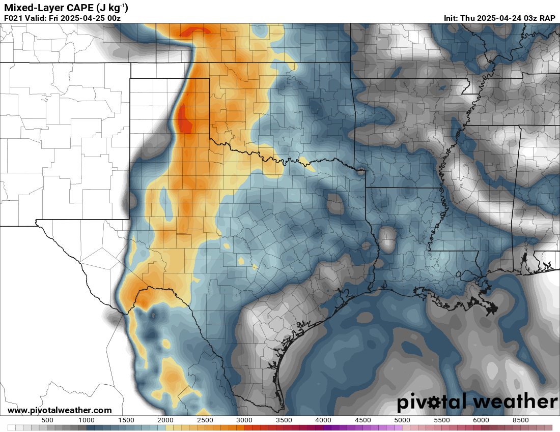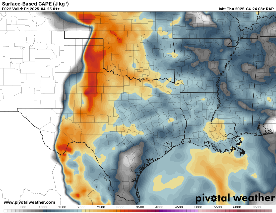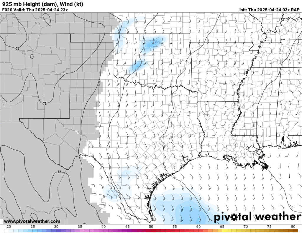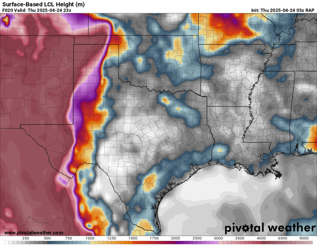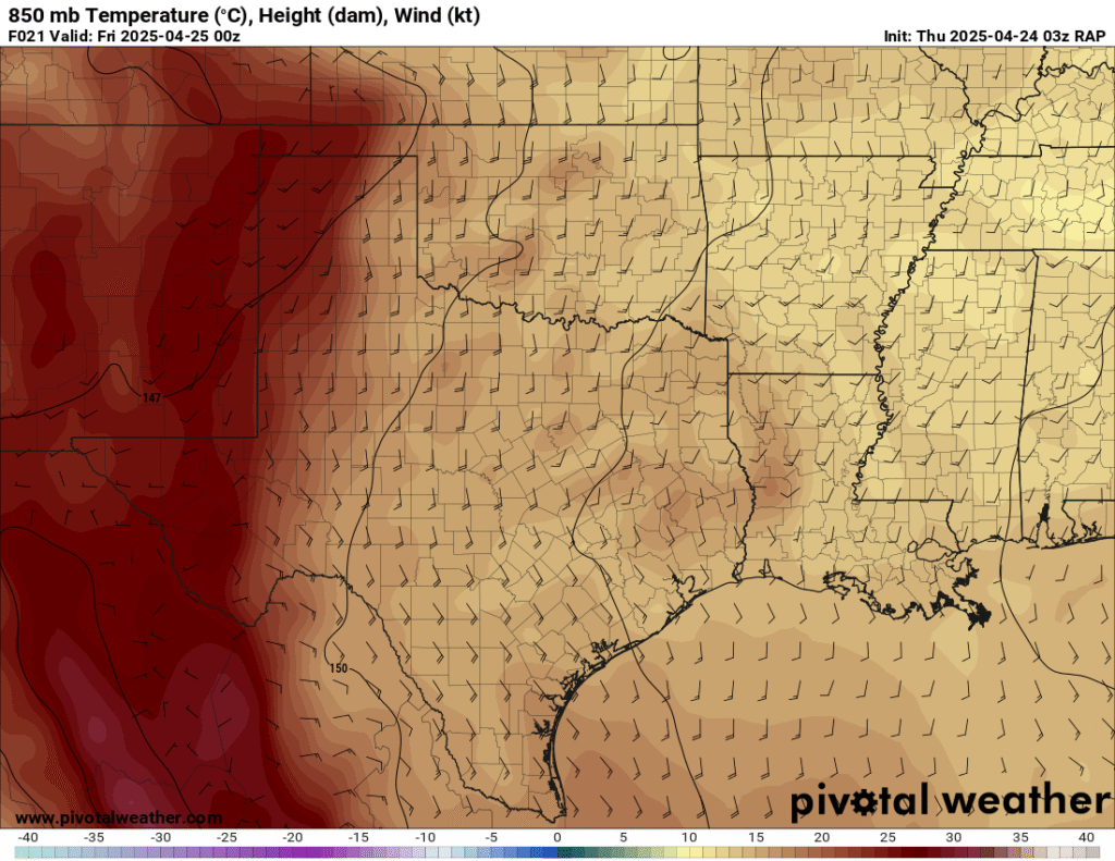 The 03Z RAP showing a similar situation with deep moisture making it to the caprock, with a real stout dryline in the northern Texas panhandle.