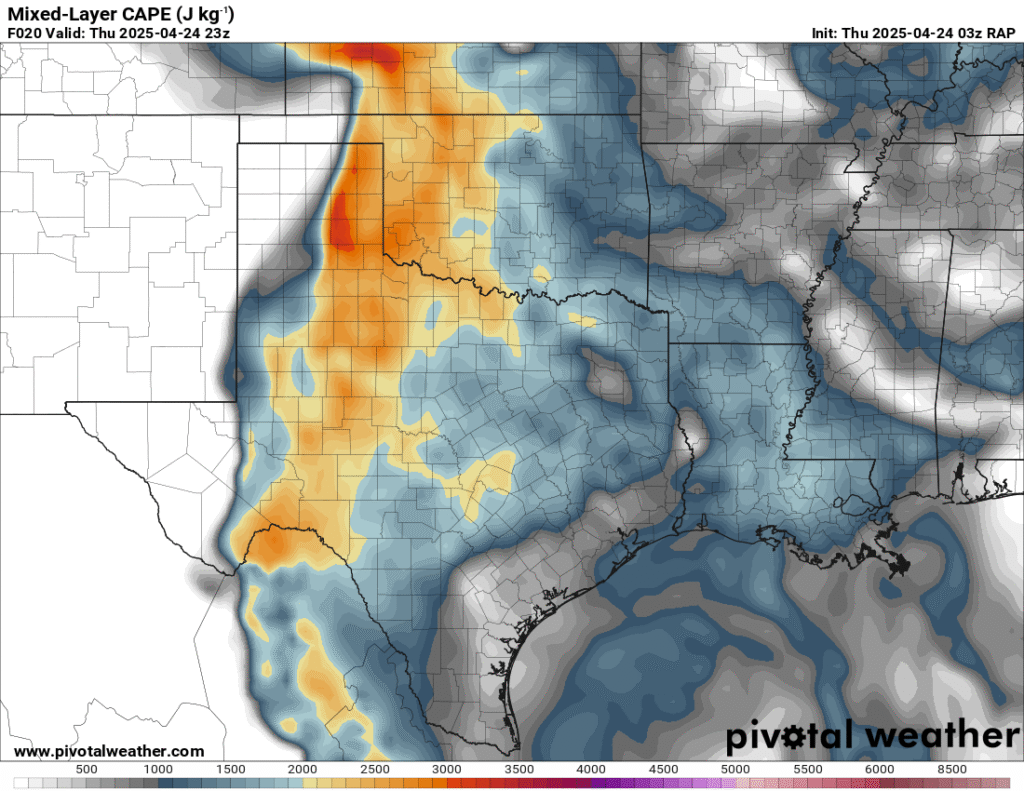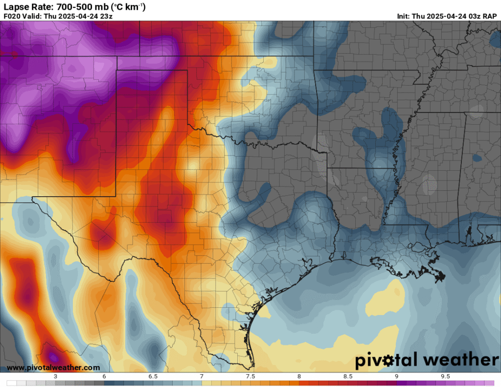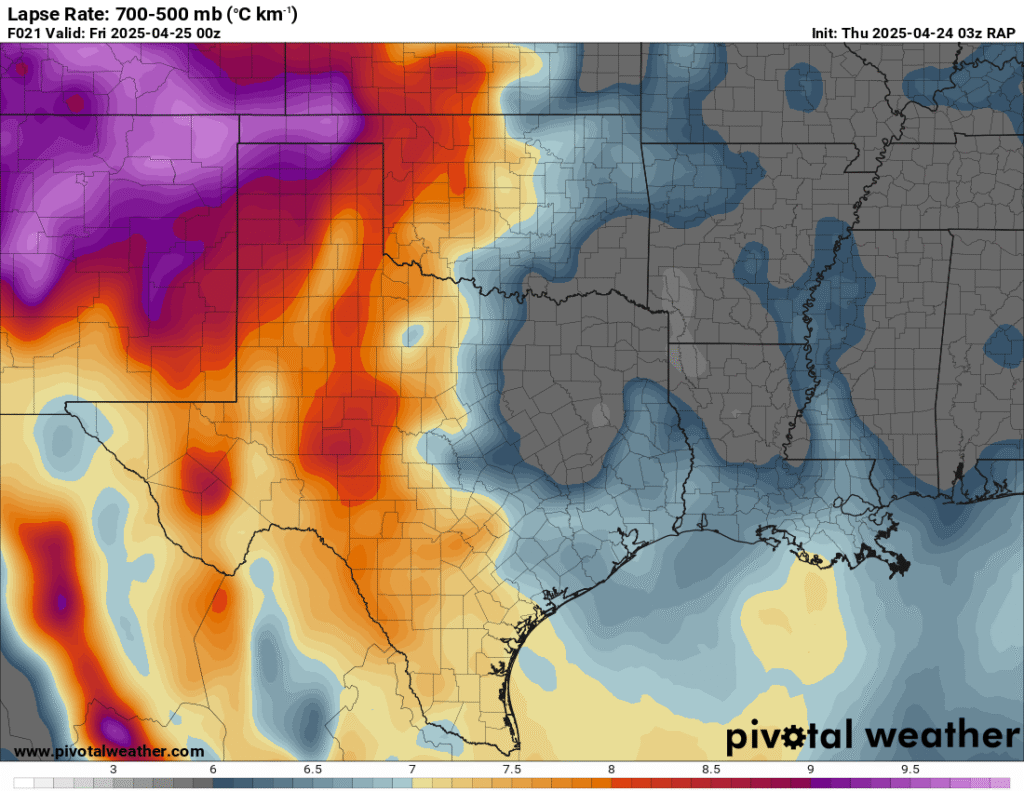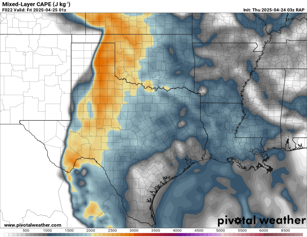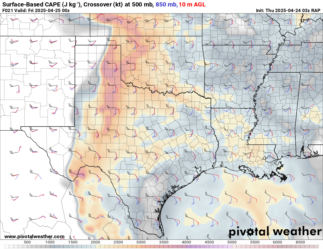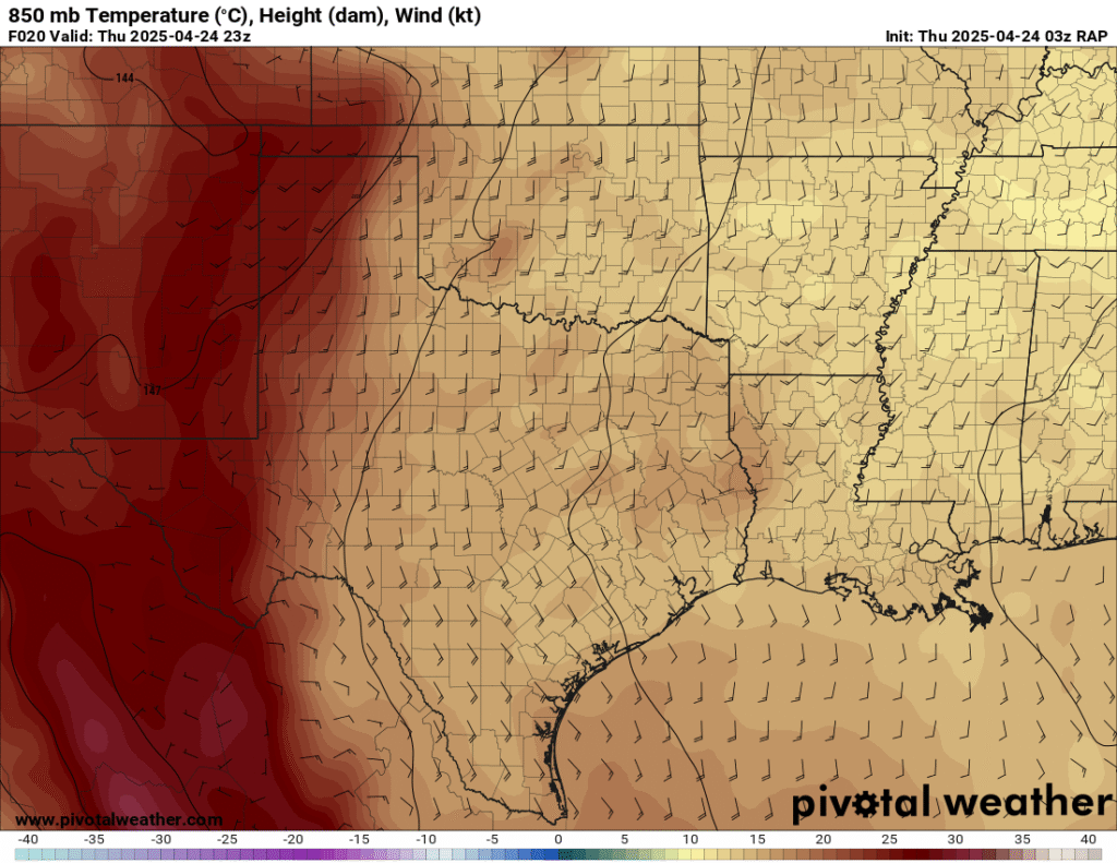 The 03Z RAP showing a similar situation with deep moisture making it to the caprock, with a real stout dryline in the northern Texas panhandle.