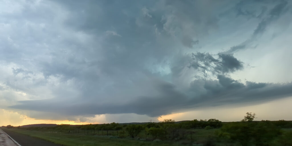 As we waited west of Afton, it was obvious the storm was outflow dominant at this point. The storm to our south and west near Post had taken over as the dominant storm. The sun had set and visibility was gone with the last light. It was time to head home, and dropping to Dickens and US82 was the best route to avoid going through the core of the storm we were chasing.