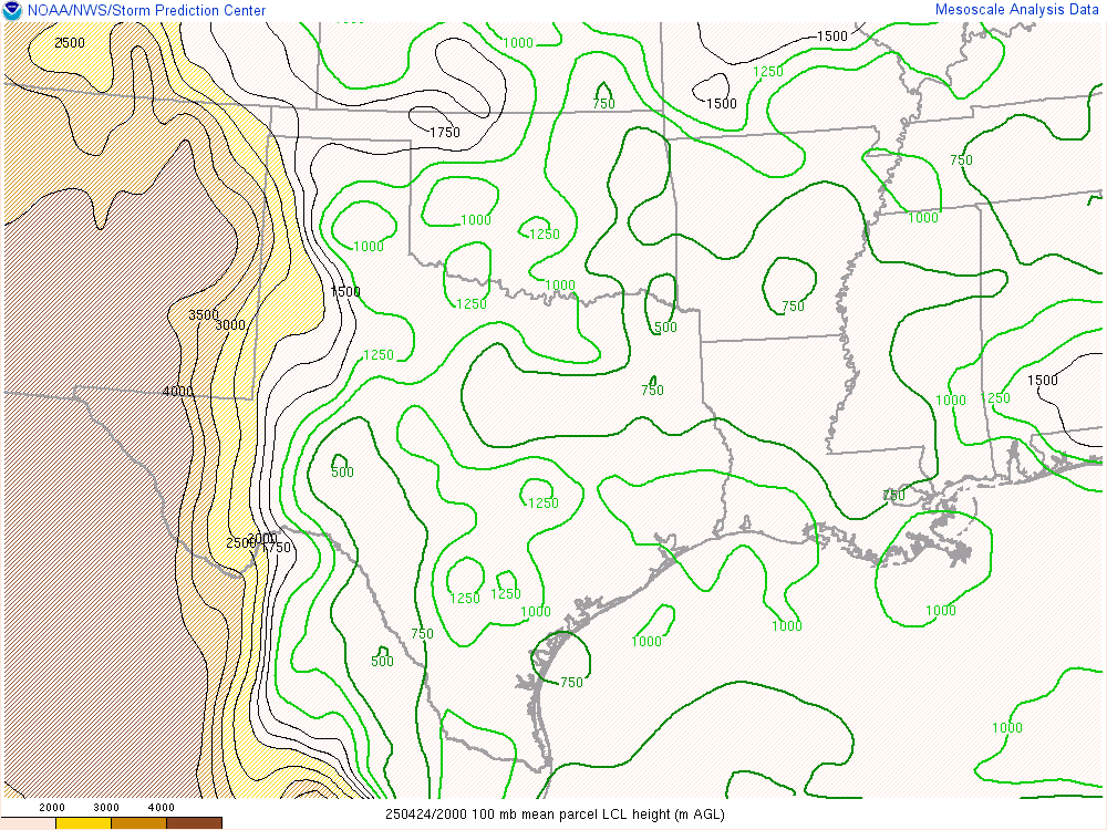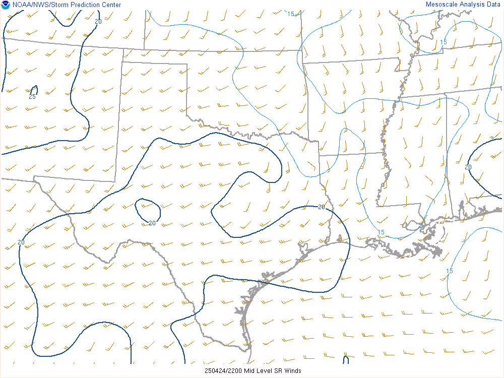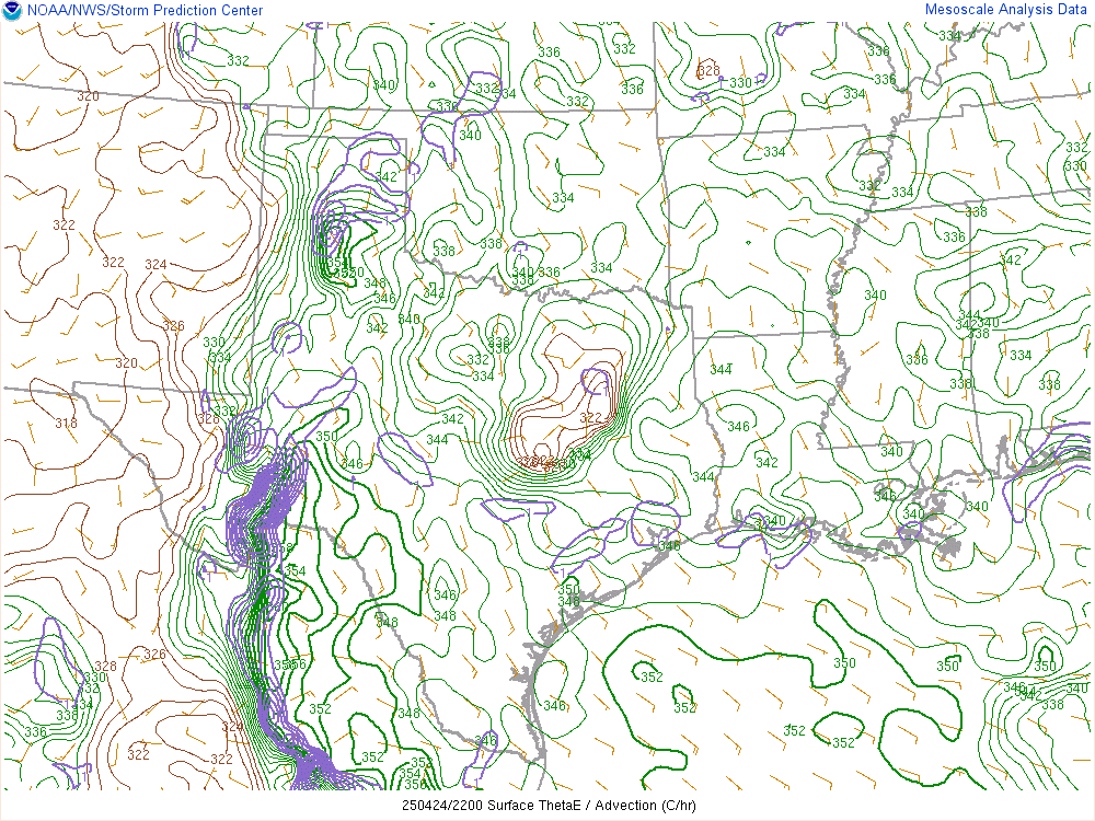 As you can tell, the cluster of storms blowing up north of Plainview was starting around 4:30 pm. The outflow boundary continued moving south and west, however, moisture was feeding up to the west of the modified air.