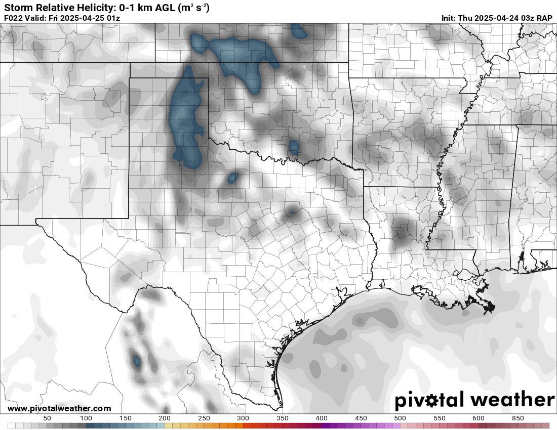 The nadocast was generally on the 24th, showing tornado potential throughout the Texas panhandle and even into Northwest Oklahoma. The later run also depicted potential all the way into Southwest Kansas.