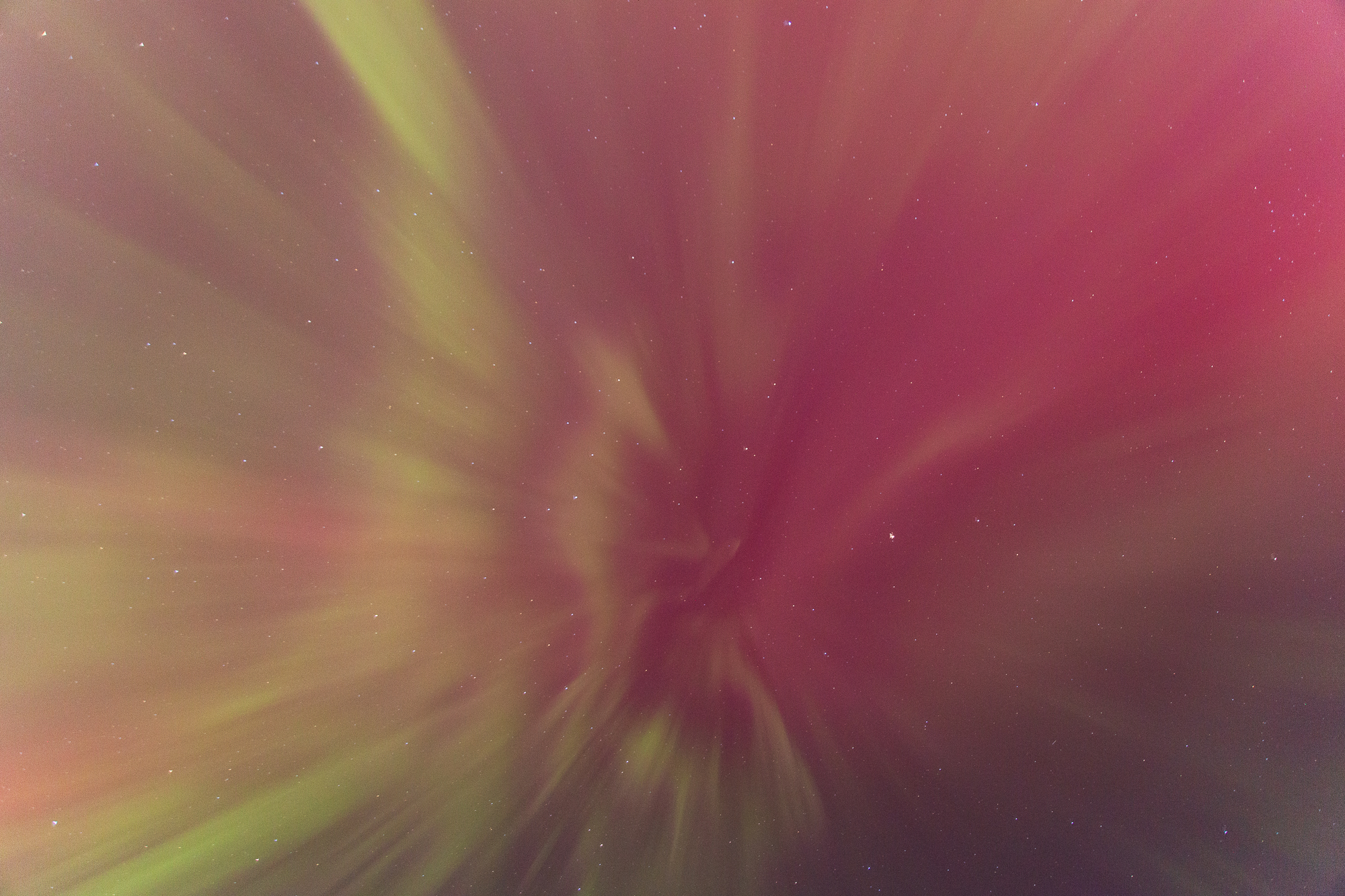 One of the more intense periods of auroras had some incredible motion overhead. I took a short video at 1/8 second exposure (8fps) below. This is Double speed (2x) video.