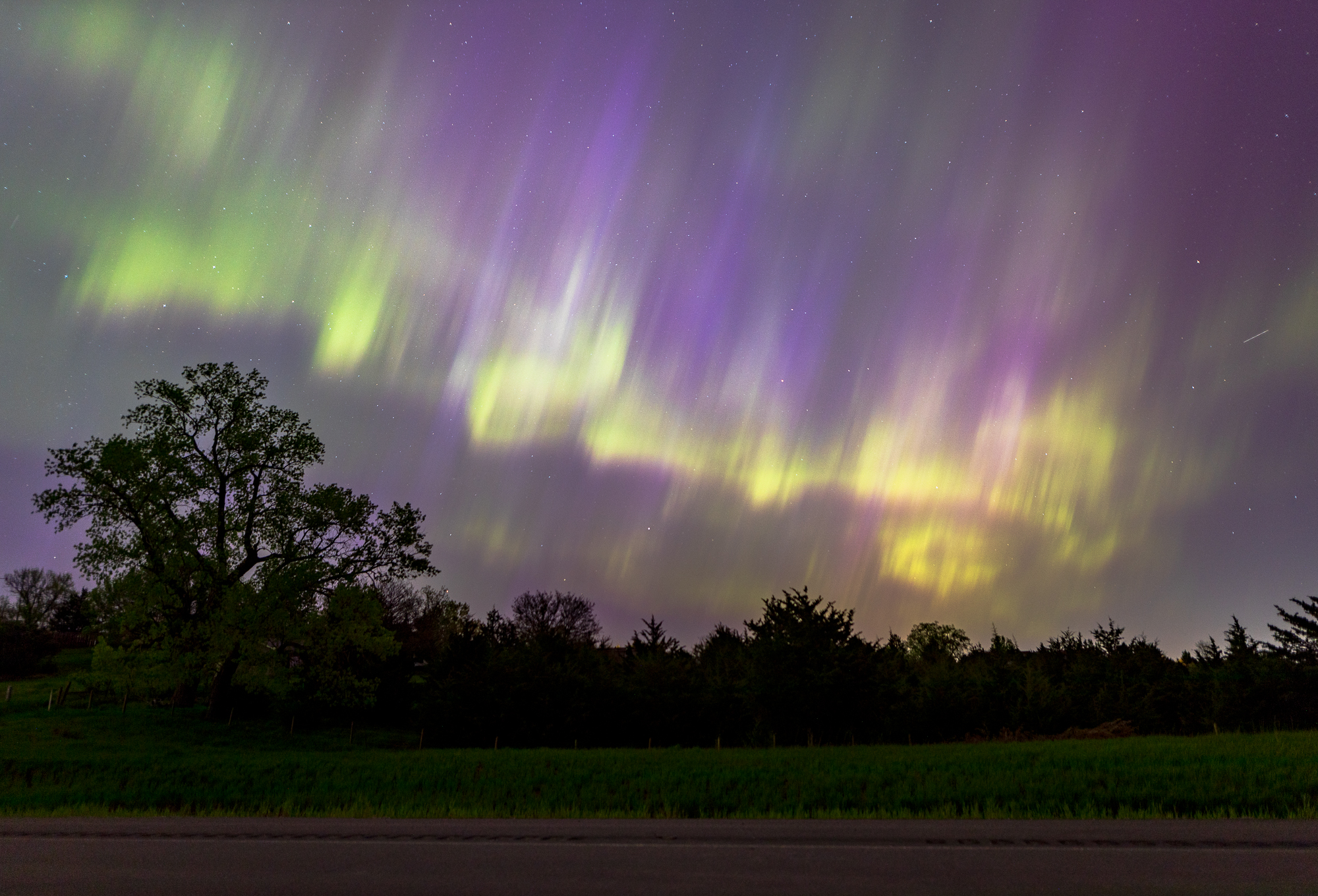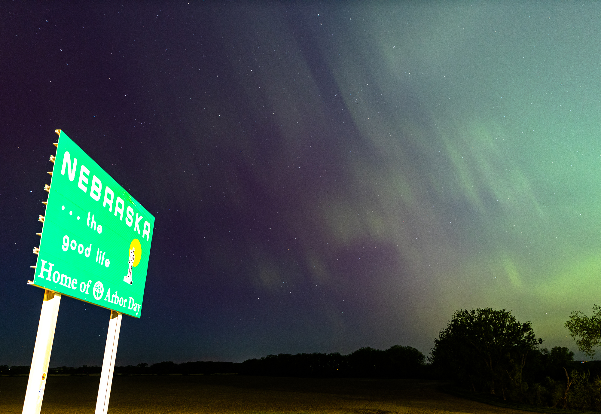 A massive geomagnetic storm hit the earth on May 10, 2024 and caused the most amazing aurora borealis I’ve ever witnessed. I was driving northbound throughout the day and booked a room in Yankton. As the sun went down I was between Columbus and Norfolk Nebraska. I found some dark areas on a desolate road near Kalamazoo, Nebraska to take photos.
