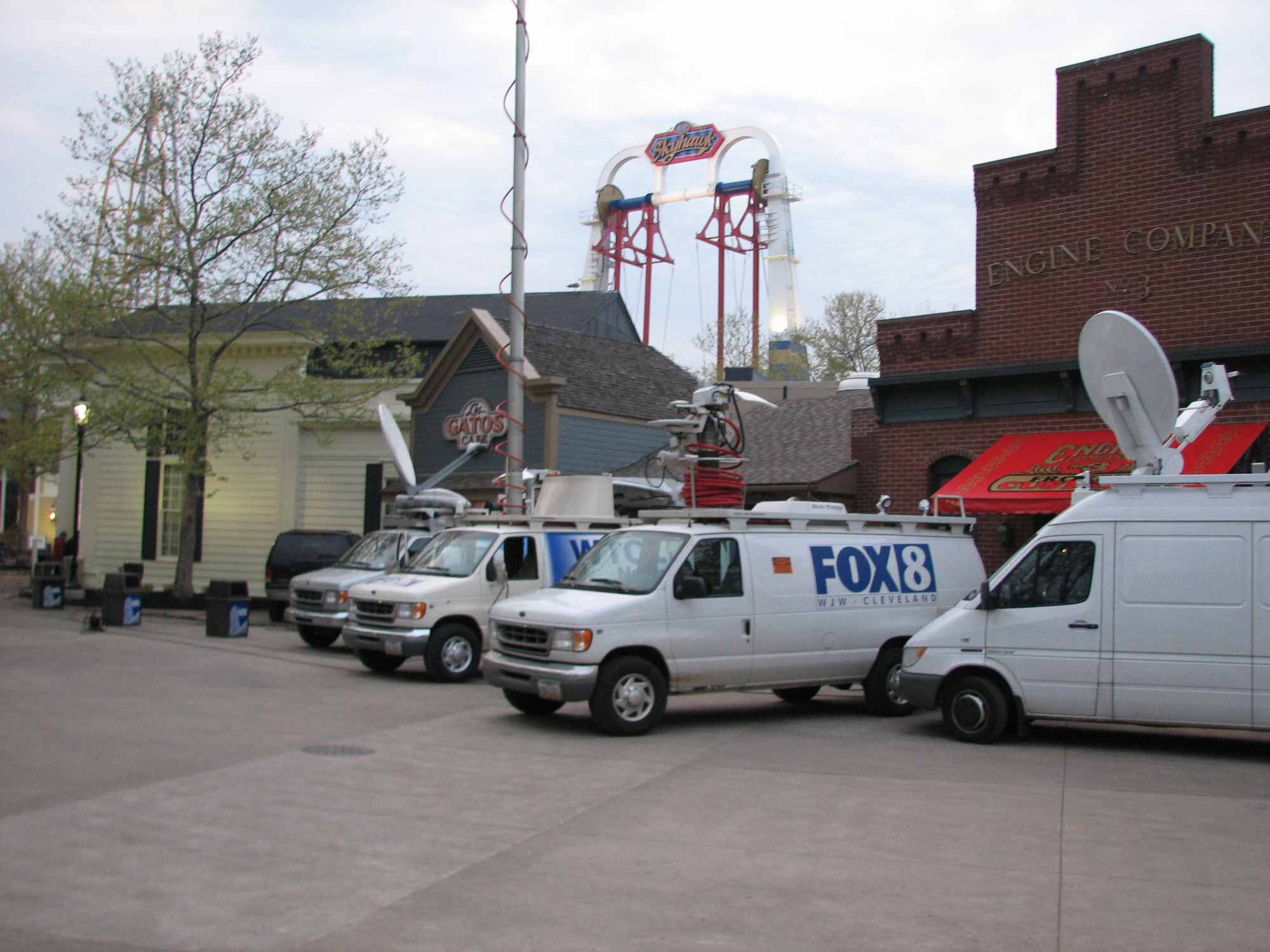 Play Pause Unmute Mute Skyhawk Media Day in Cedar Point on May 4, 2006 Home » Cedar Point » Skyhawk Media Day Media day for Skyhawk opening in 2006 at Cedar Point SkyhawkFOX Cleveland Live ShotSkyhawk at Cedar PointMedia Trucks at Cedar PointNews Trucks at Cedar PointSatellite TruckTown Hall MuseumMix 102.7 Sandusky VanMedia_Lighting_PlatformSkyhawk Media DayBetsy_and_Jim_InterviewSkyhawk_Media_Day_at_Cedar_PointCamera_EquipmentStage_LightsWaiting for the next rideRaptor Jo (TOOL)John Hildenbrandt speaking to the crowdOpening of SkyhawkStan CheckettsTonySkyhawk is openSkyhawk Media DayCamera MountSecuring Camera Other content you may enjoy Maverick Media Day maXair Media Day Cedar Point National Geographic Shoot at Cedar Point Cedar Point May 2003
