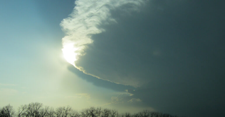 We lose our windshield to a monster hailstorm near Breckenridge, TX. Hail to the size of baseballs fell as a southeast moving Supercell turned right to almost due south and left us caught in the path.